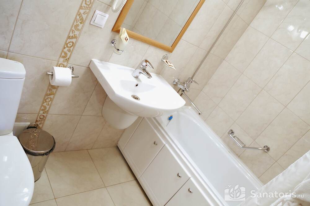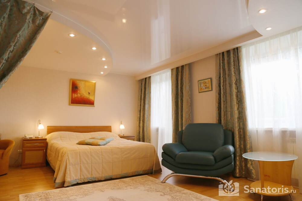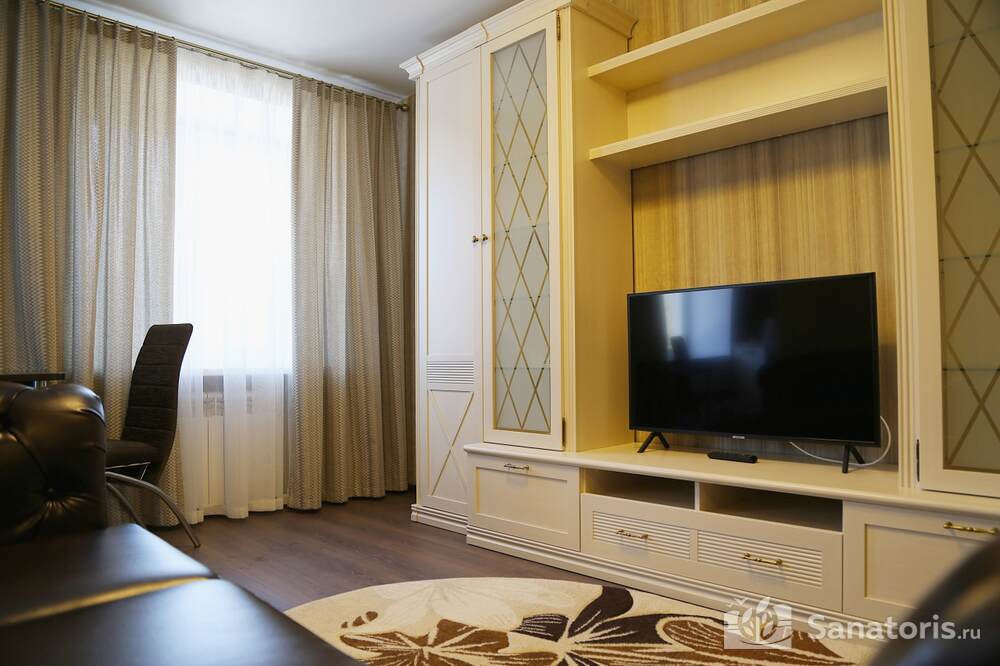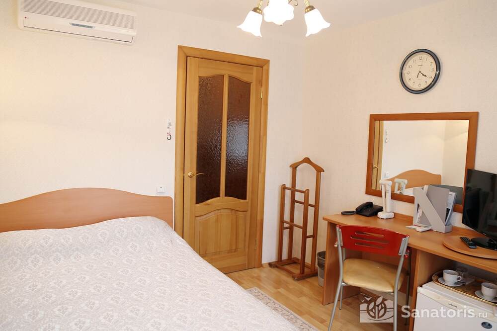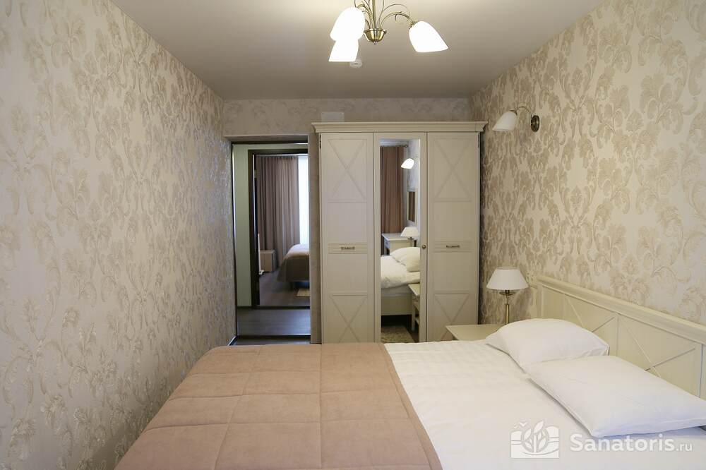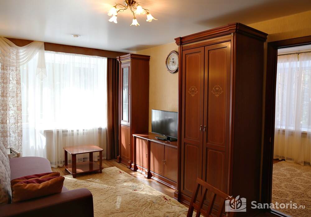 Всего на территории санатория три корпуса. Два из них предназначены для проживания постояльцев. В каждом из них 5 этажей. Так же есть двухэтажный медицинский корпус, который соединяется со спальными корпусами теплым переходом.