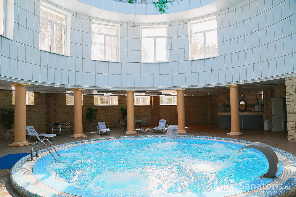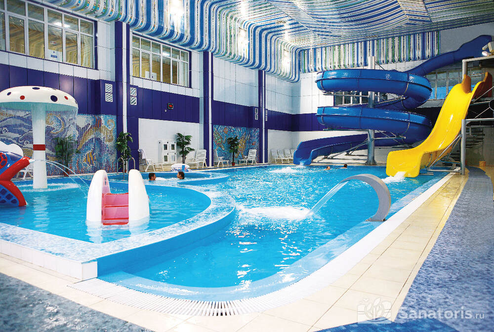 Оздоровительный комплекс располагает собственным аквапарком, который находится в медицинском корпусе. Здесь есть большой бассейн с горками, джакузи, противотоки и гейзеры. Для детей оборудована отдельная зона с красивым фонтаном. В определенное время здесь проводят уроки аквааэробики. Гости могут посетить банный комплекс. Здесь предусмотрено две парилки, небольшой бассейн и гидромассаж.