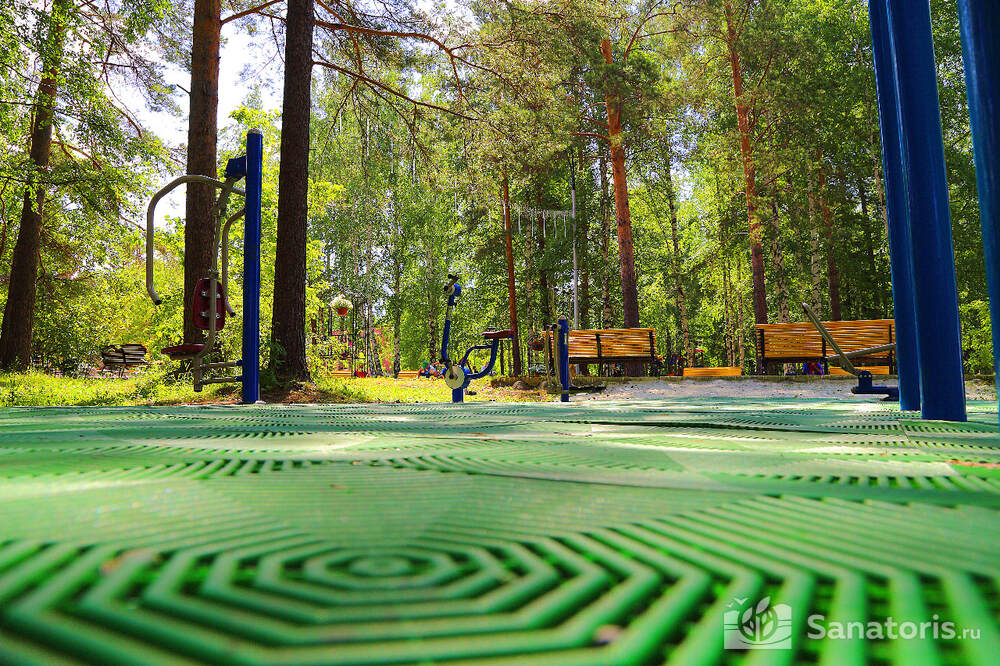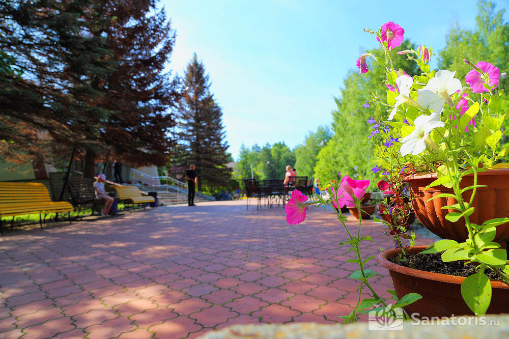 Общая площадь комплекса занимает 23 гектара. Со всех сторон курорт окружен хвойным лесом. На ухоженной территории много зелени и цветов, уютных беседок и скамеек для отдыха. Гости могут прогуливаться по каменным дорожкам, наслаждаться кристально чистым воздухом. Гармония присутствует даже в самых мелких деталях. Здесь есть все необходимое для комфортного отдыха и оздоровления.