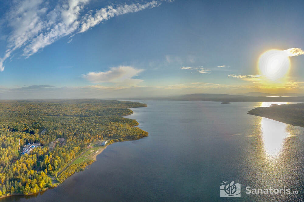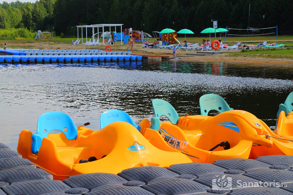 Оздоровительный комплекс предлагает гостям посетить собственный пляж. Он находится в ста метрах от спальных корпусов. Эту пляжную зону называют лечебной. Здесь есть пирс, раздевалки, лежаки. Отдыхающие могут покататься на лодке или катамаране.