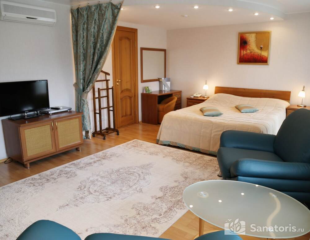 В каждом номере есть санузел, телевизор, электрический чайник, Интернет, холодильник, лоджия. В некоторых апартаментах есть не только душ, но и ванная.
