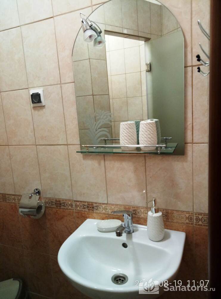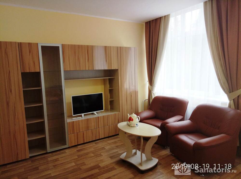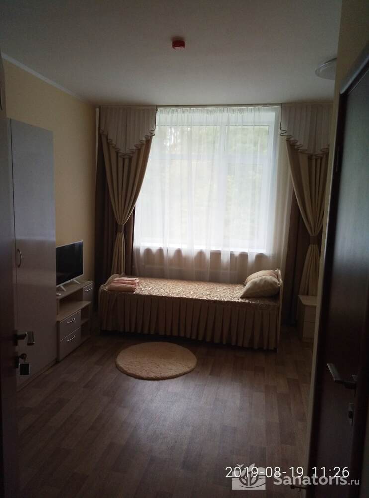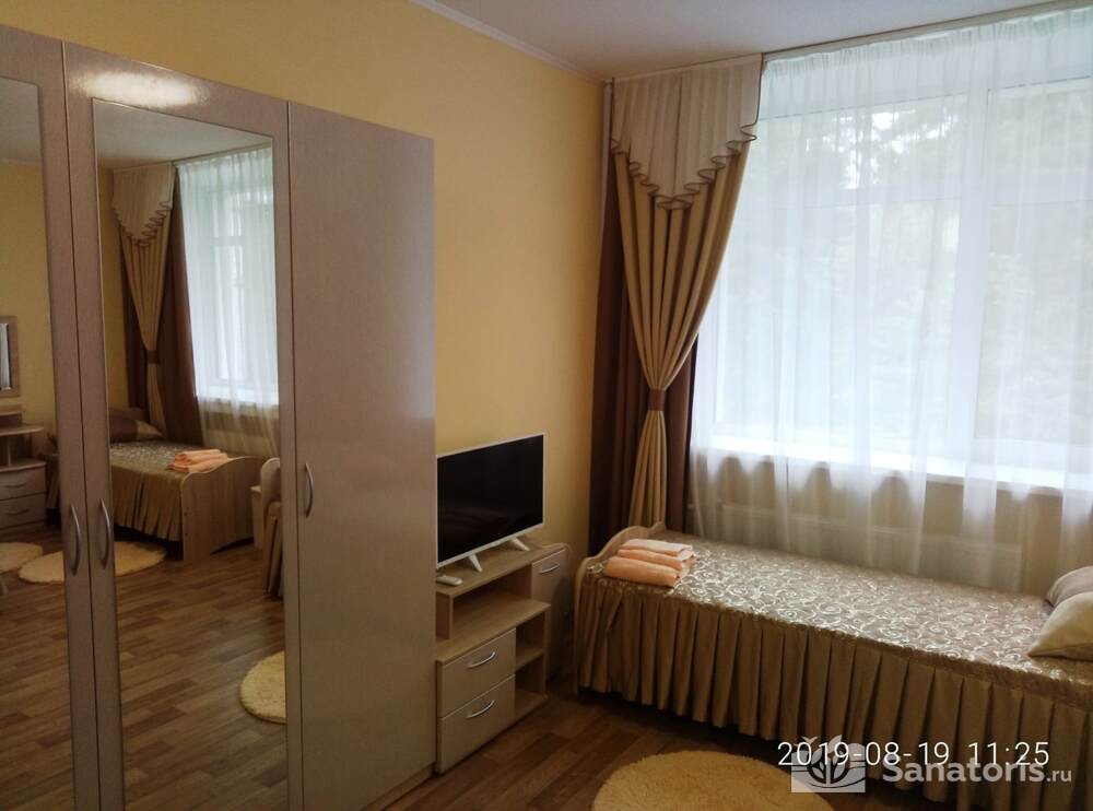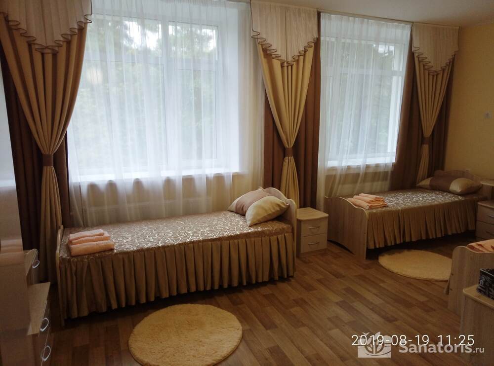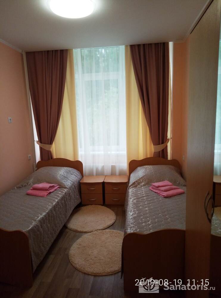 Здравница находится в четырехэтажном сооружении. Гости проживают в двух и трехместных номерах. Обстановка в номере простая, но уютная. Здесь есть только самые необходимые вещи и предметы мебели. Удобства расположены на этаже.