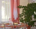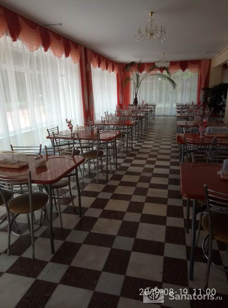Постояльцы санатория обеспечиваются комплексным питанием 4 раза в день. По назначению специалиста предоставляется диетическое меню. Столовые блок довольно светлый и просторный.