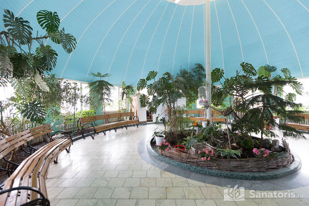 Изюминкой санатория является зимний сад. Здесь произрастает около 80 видов тропических растений. Среди них можно увидеть павлинов и фазанов. В зимнем саду обустроены аквариумы с большими сомами и золотыми рубками.