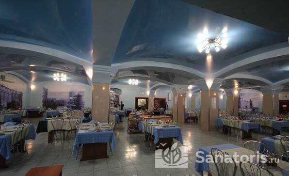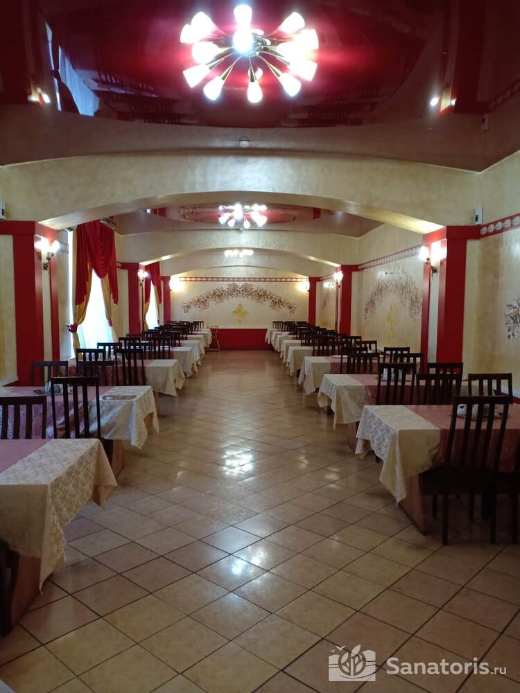 Гости питаются в шикарной столовой. Для отдыхающих предоставляется меню курортного типа. Благодаря этому каждый может выбрать блюда с учетом своих предпочтений. Дополнительно предоставляется диетическое меню. Так же на территории здравницы есть шикарный ресторан. Здесь можно проводить банкеты и праздничные мероприятия.