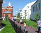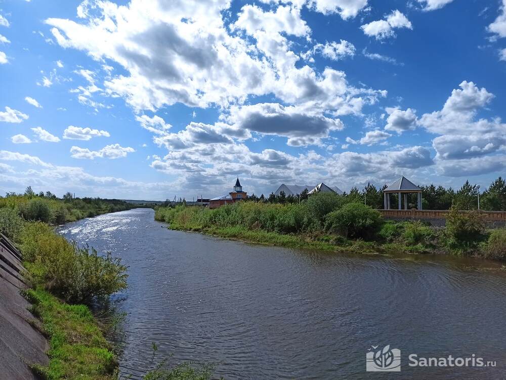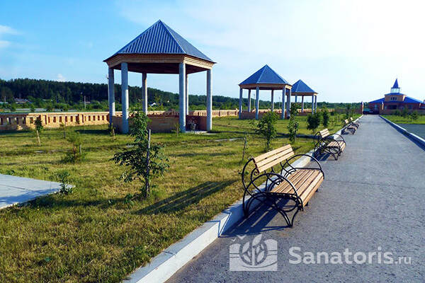 Радом с комплексом протекает живописная речка Пышма. Общая площадь курорта составляет около 30 гектаров. Все сооружения выполнены в готическом дизайне. Гости могут прогуляться по мосту, который проходит через реку. На территории здравницы есть детская зона, церковь, множество деревянных беседок и лавочек для отдыха. Ухоженная территория утопает в зелени. Вокруг произрастает хвойный лес, шумит река.