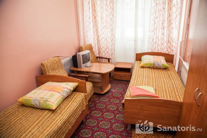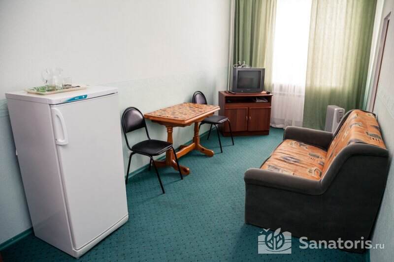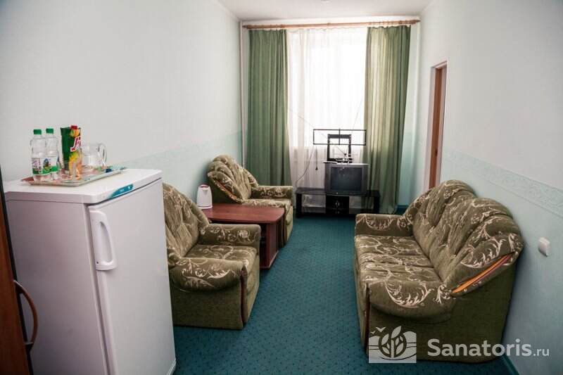 На ухоженной территории здравницы расположено 4-х этажное здание спального корпуса, которое соединено уютным переходом с медицинским корпусом. В жилом корпусе отдыхающим будут предложены номера разной категории: от эконом до люкса. Все они светлые и уютные, оснащены необходимой мебелью и бытовой техникой.