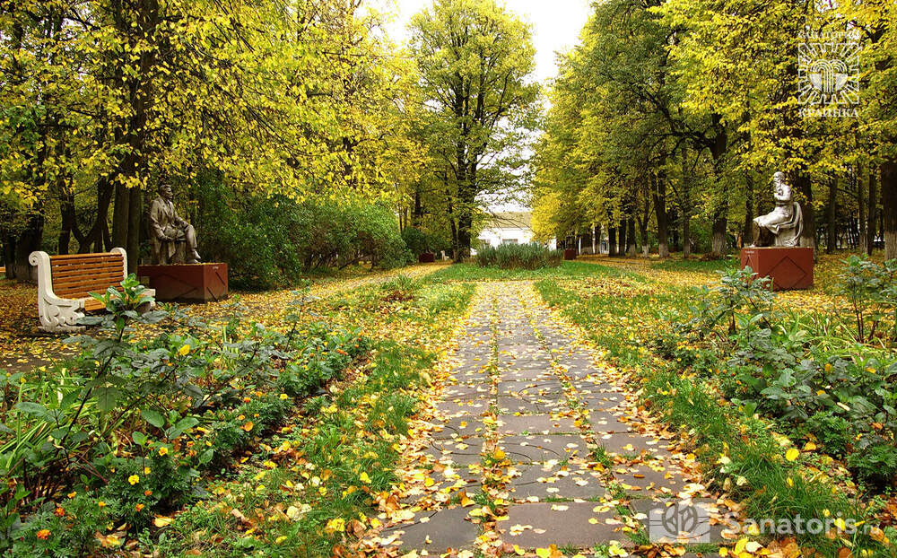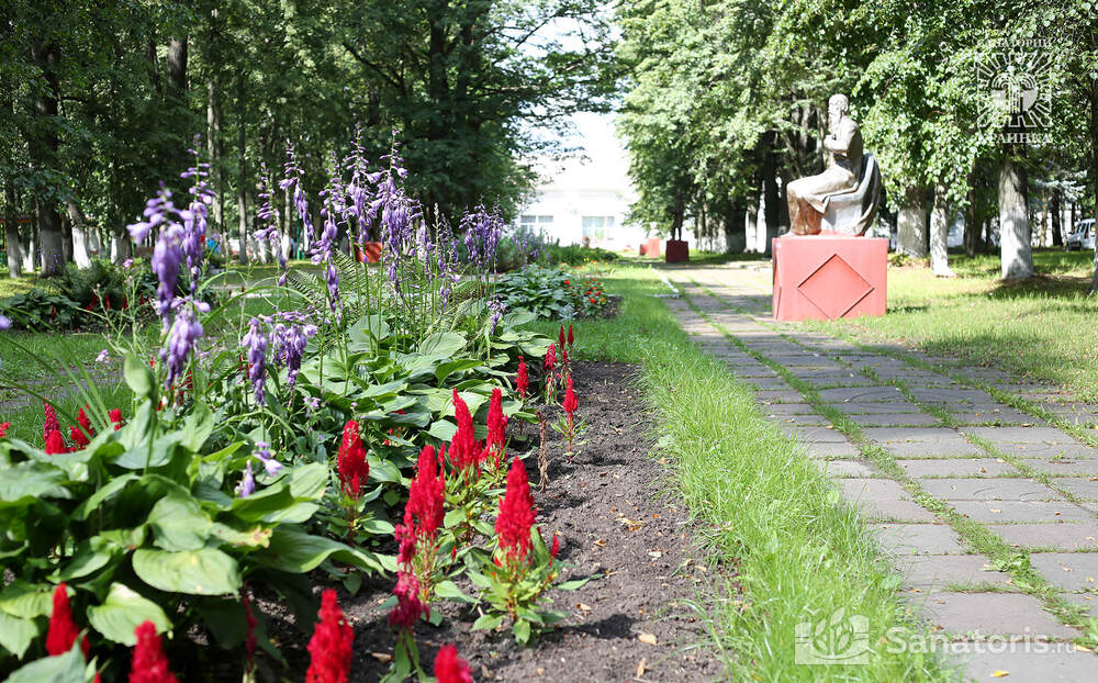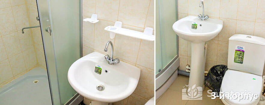 Санаторно-оздоровительный комплекс образуют 6 жилых корпусов кирпичной кладки:
