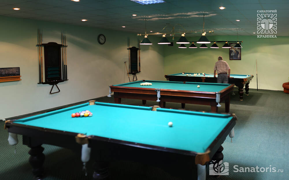 Для отдыхающих доступен крытый пресноводный бассейн и жаркая баня с сауной. Услуга платная. Досуг гостей обеспечат игра в бильярд, а также регулярные показы интересных фильмов, которые проводятся в просмотровом зале здравницы.