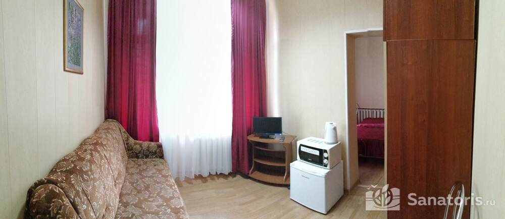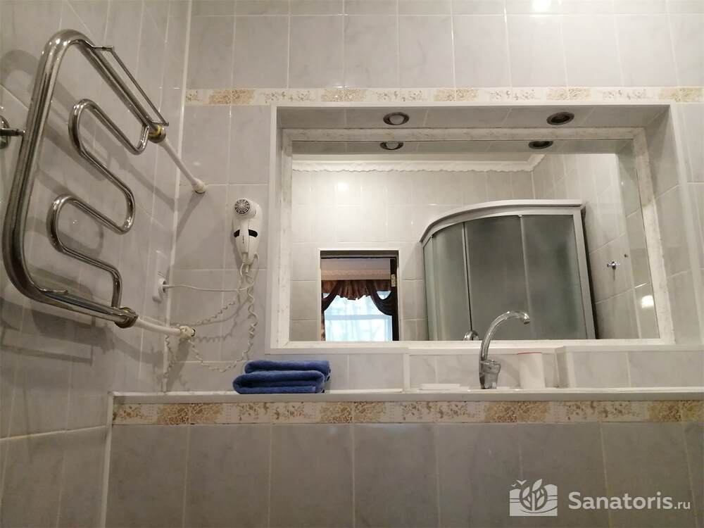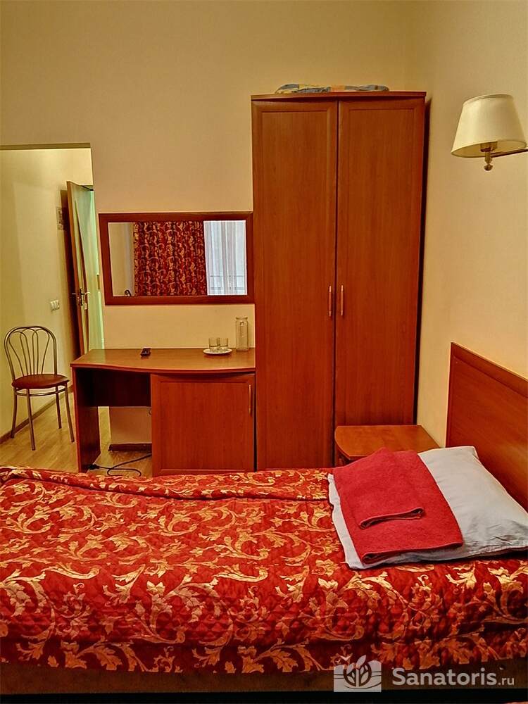 Все жилые помещения имеют свои санузлы, ванную, оснащены мебелью. В каждом номере установлен телевизор и холодильник. Полотенца меняют каждый день, постельное белье – раз в 7 дней. Влажную уборку в номерах производят еженедельно. Питание в санатории 3-разовое. Выбор блюд осуществляется по меню. Разнообразить рацион можно, питаясь в местном кафе. Оно в головном здании санатория. К посещению открыт и фитобар.