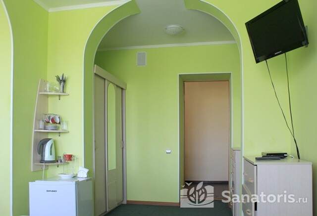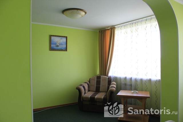 Здравница работает всесезонно и может принять до 500 гостей единовременно. Для размещения отдыхающим предоставлено 7 двухэтажных зданий: 2 коттеджа и 5 больших спальных корпусов. В спальных корпусах жилые номера обустроены по категории «стандарт». В них предусмотрены: балкон, отдельный санузел, необходимая меблировка и телевизор. В коттеджных номерах установлены умывальники, а душевая комната одна для всех, кто проживает на этаже.