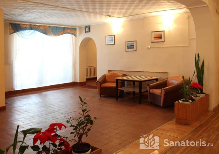 Актовый зал санатория можно арендовать для проведения деловых встреч, корпоративных мероприятий, праздников, вечеринок. Зал рассчитан на 50 человек, в нем есть сцена, трибуна, зал с экраном для демонстрации видео, микрофон. На улице неподалеку находятся крытые беседки и мангал.