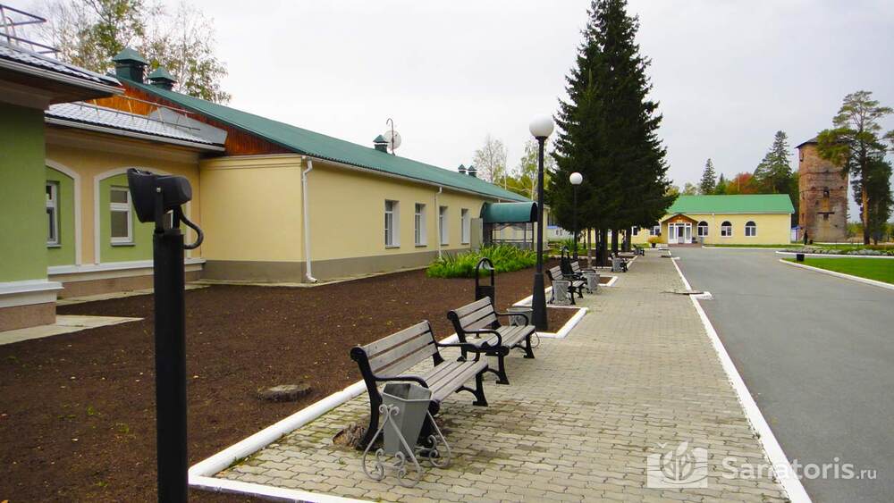 В лесопарковой зоне обустроены лавочки, аллеи для прогулок. Вся территория утопает в зелени и цветах. Корпус выполнен в уникальном архитектурном стиле. Неподалеку есть памятник Яковлеву, который открыл это прекрасное место. Гостей ждут комфортные номера, внимательный персонал и качественное оздоровление.