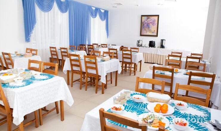 Питание туристов производится в большой столовой. Здесь представлено комплексное питание, а так же диетическое меню. Грамотные специалист разрабатывают программу правильного питания для каждого желающего постояльца. Кроме этого предусмотрено меню для детей. Все блюда готовятся из натуральных продуктов.