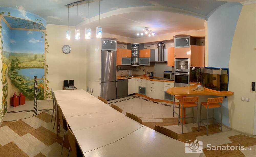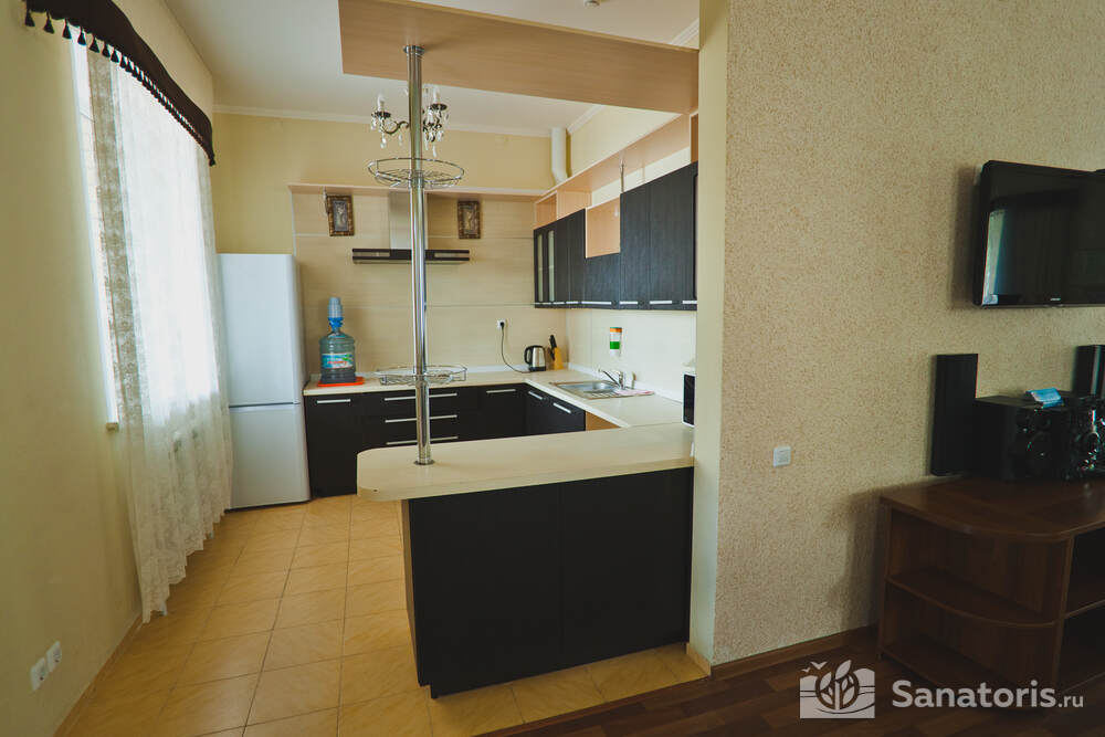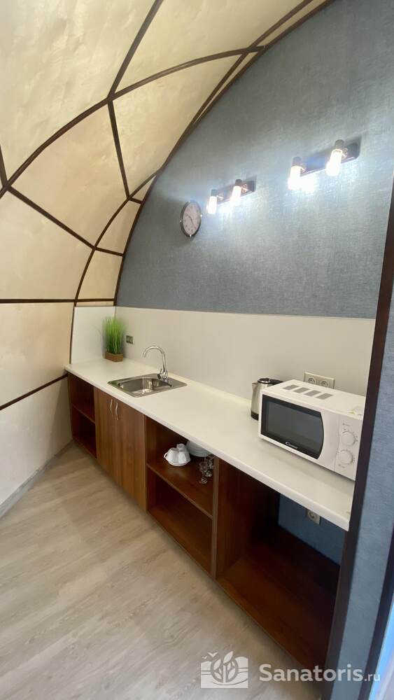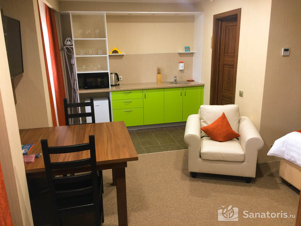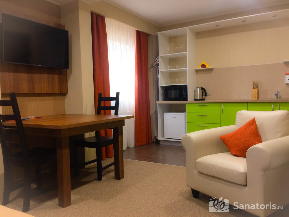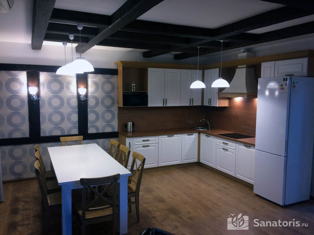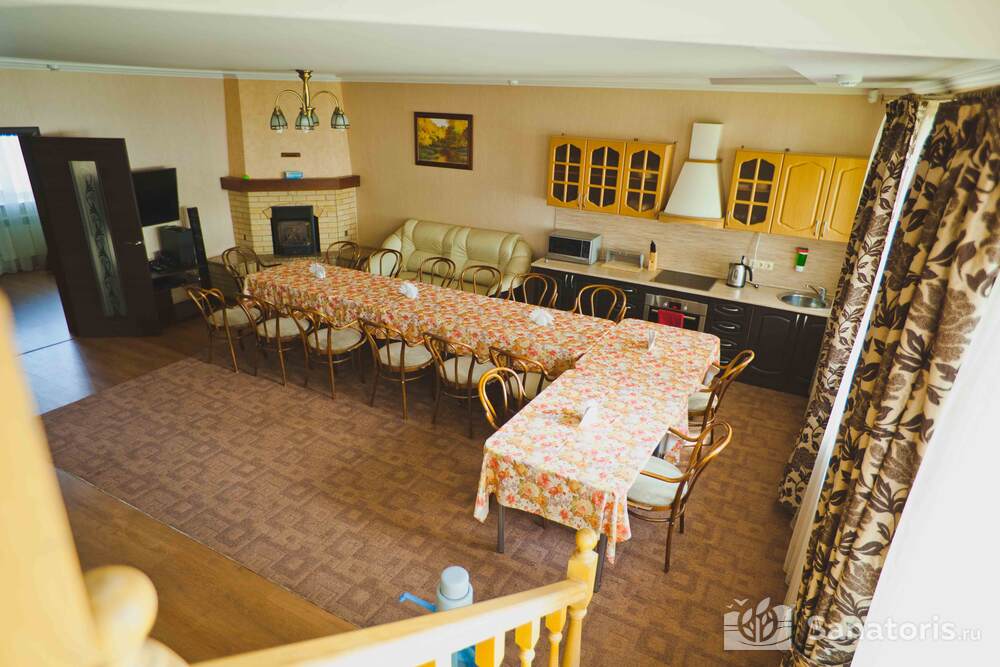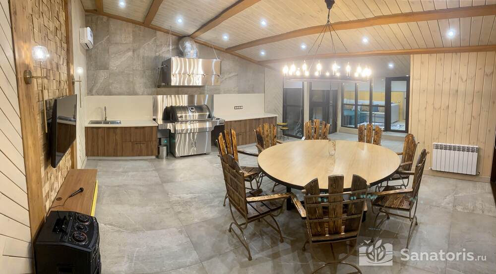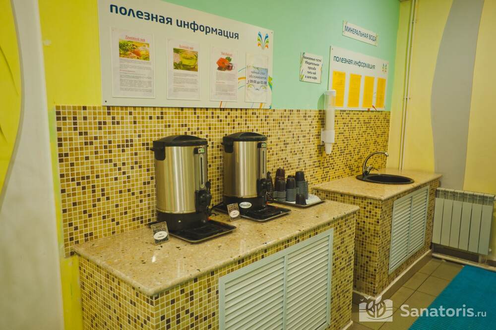 Постояльцам базы предлагается несколько возможностей организовать своё питание: при коттеджах имеются маленькие кухни, где можно приготовить горячую еду самим; можно посетить ресторанный комплекс, здесь посетителям предлагают шведский стол; есть несколько кафе: в отеле «Источник», другое при гостиничном комплексе, где находится третье кафе с говорящим названием «На пляже» объяснять нет необходимости.