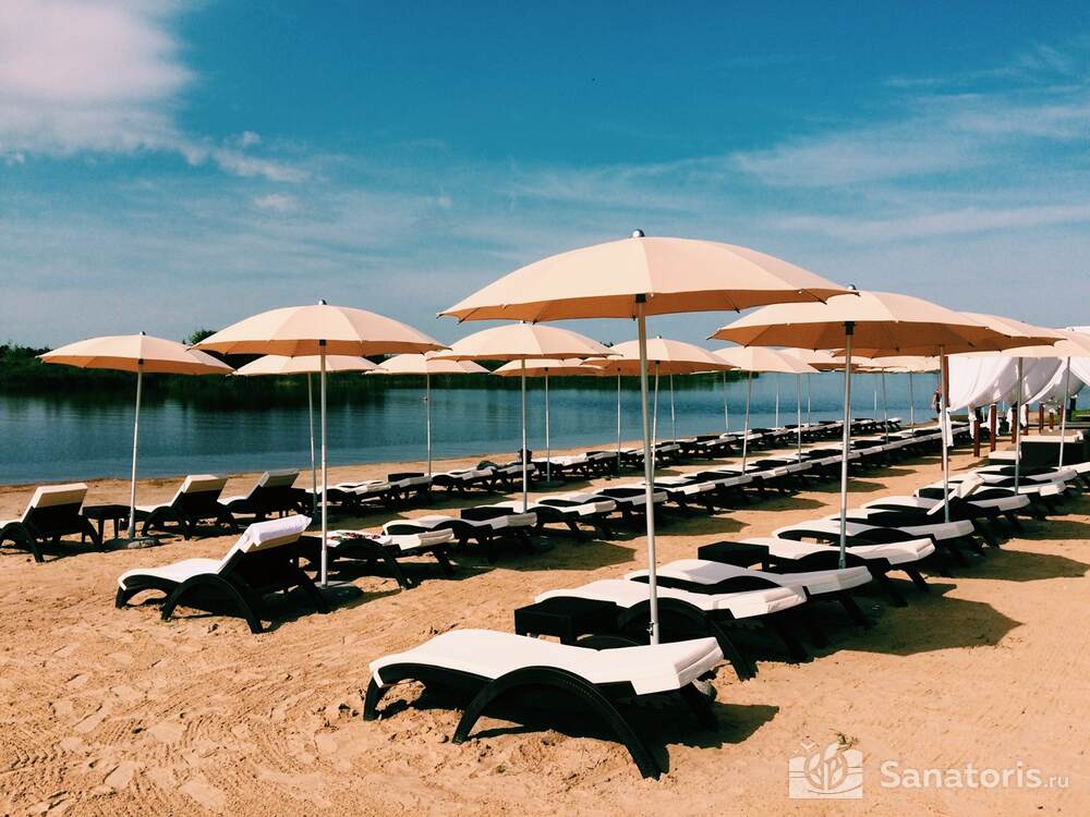 Пляж базы в ближайшей округе считается наилучшим. Для безопасности его посетителей в купальный сезон здесь постоянно дежурят сертифицированные спасатели. Для переодевания купающихся установлены кабинки, есть возможность передохнуть от излишка солнечных процедур в оборудованных теневых зонах.
