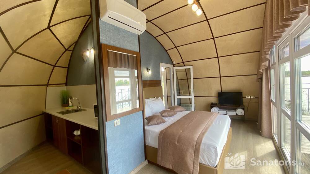 Помимо развлечений на воде, есть и другие: для любителей игр в стиле милитари – тир, пейнтбол и лазертаг, взрослые вместе с детьми могут посетить зоопарк, парк аттракционов. Для приверженцев автоспорта автодром. Для желающих попариться с веничком и без — две дровяных бани на берегу озера. Третья баня эксклюзивная — на плаву, все банные услуги находятся на палубе. Не забыты фанаты сухого жара, их привечает двухэтажная сауна, рядом купель, наполненная минеральной водой.