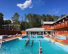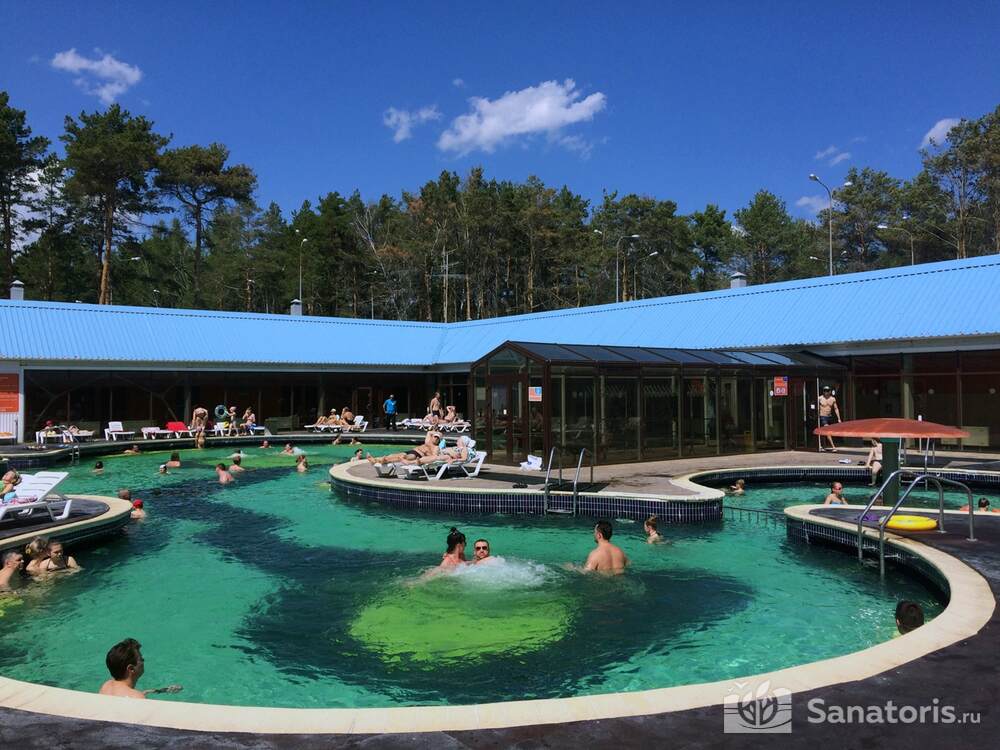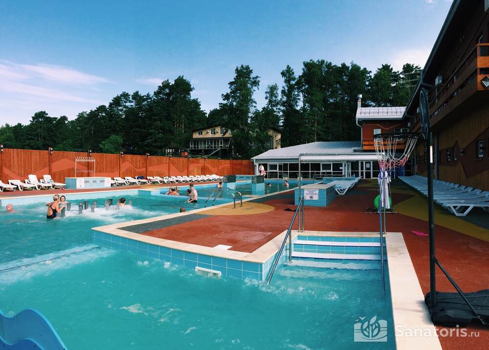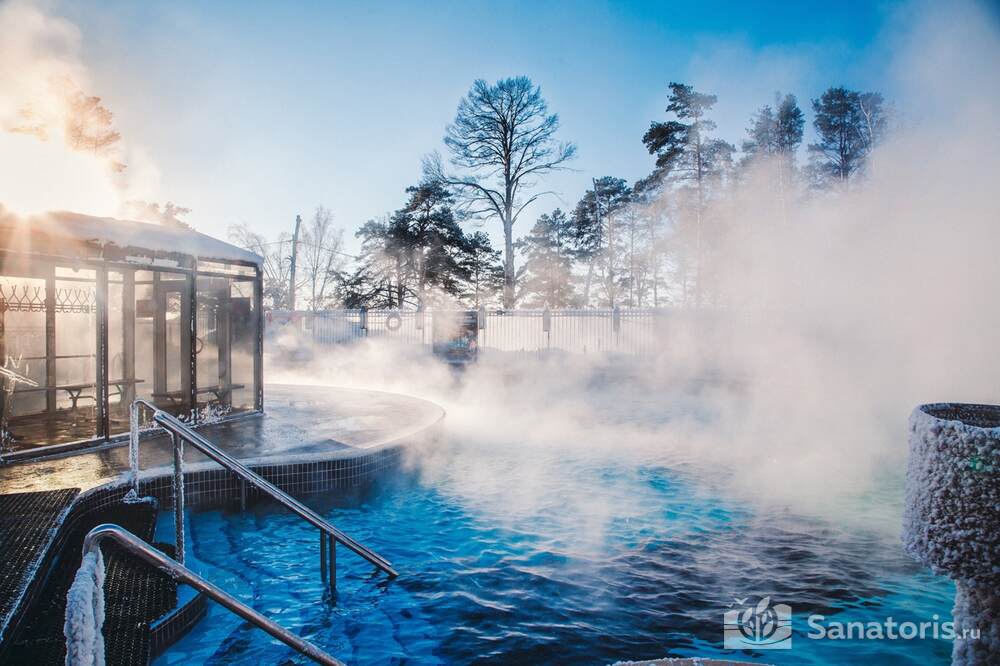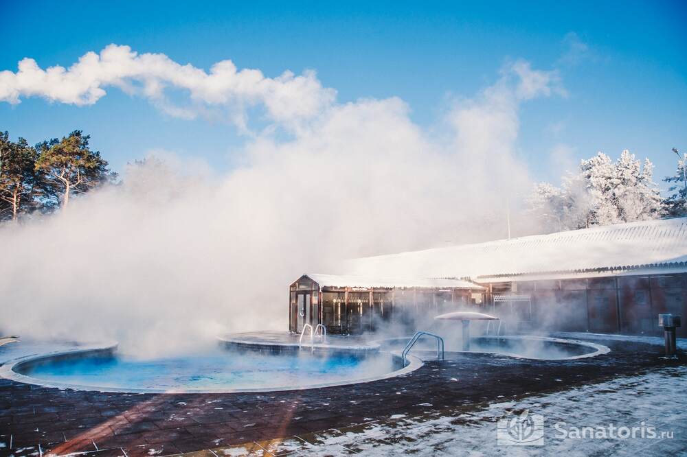 Ещё одна примечательная изюминка базы — это то, что она является термальным курортом. Здесь бьют горячие ключи. Купаются здесь круглогодично. Зимой – в бассейнах с водой из источников, летом — ещё и в озере.