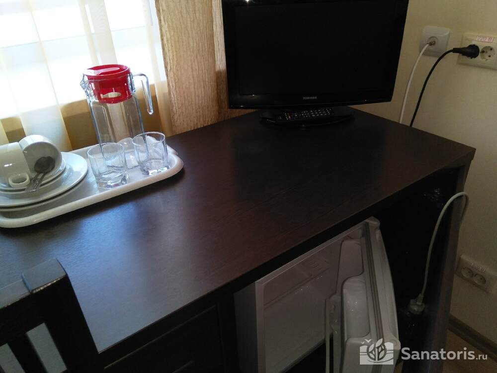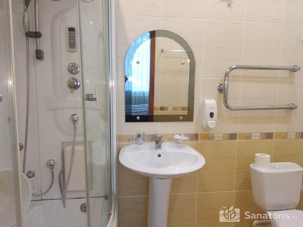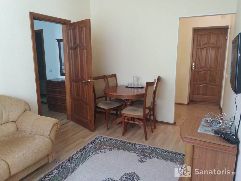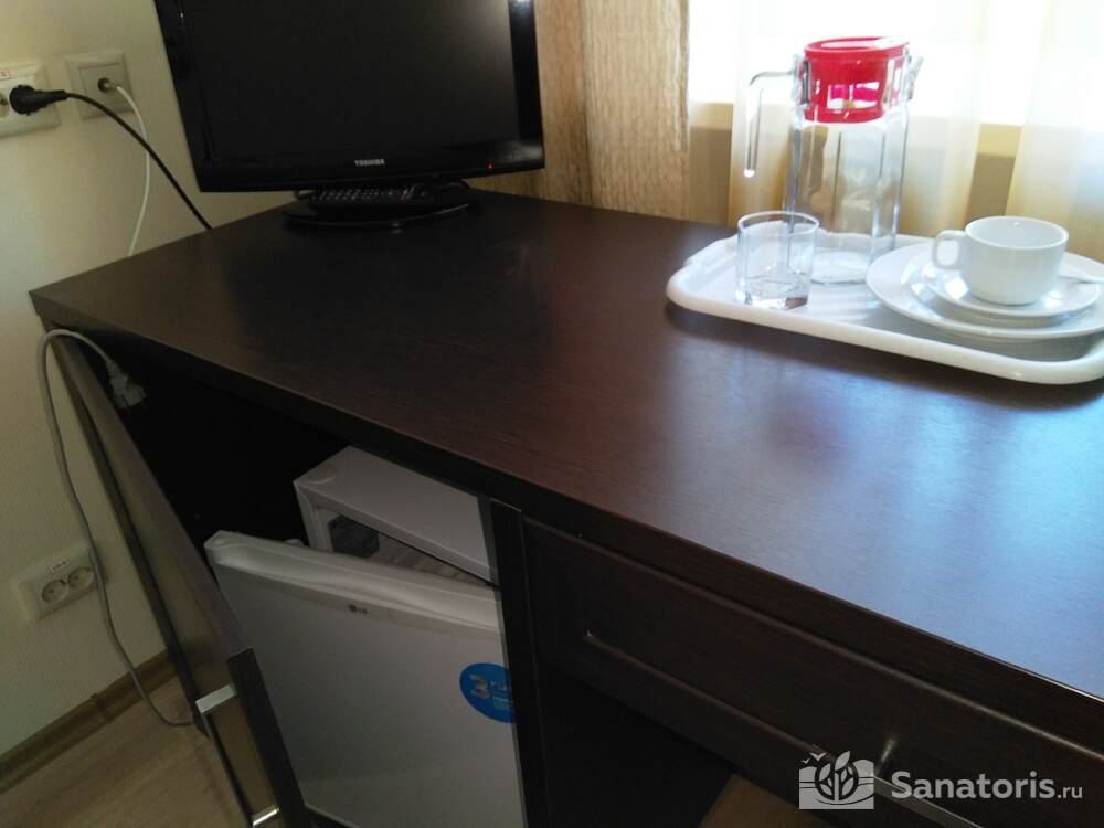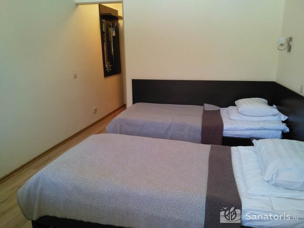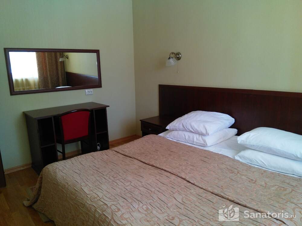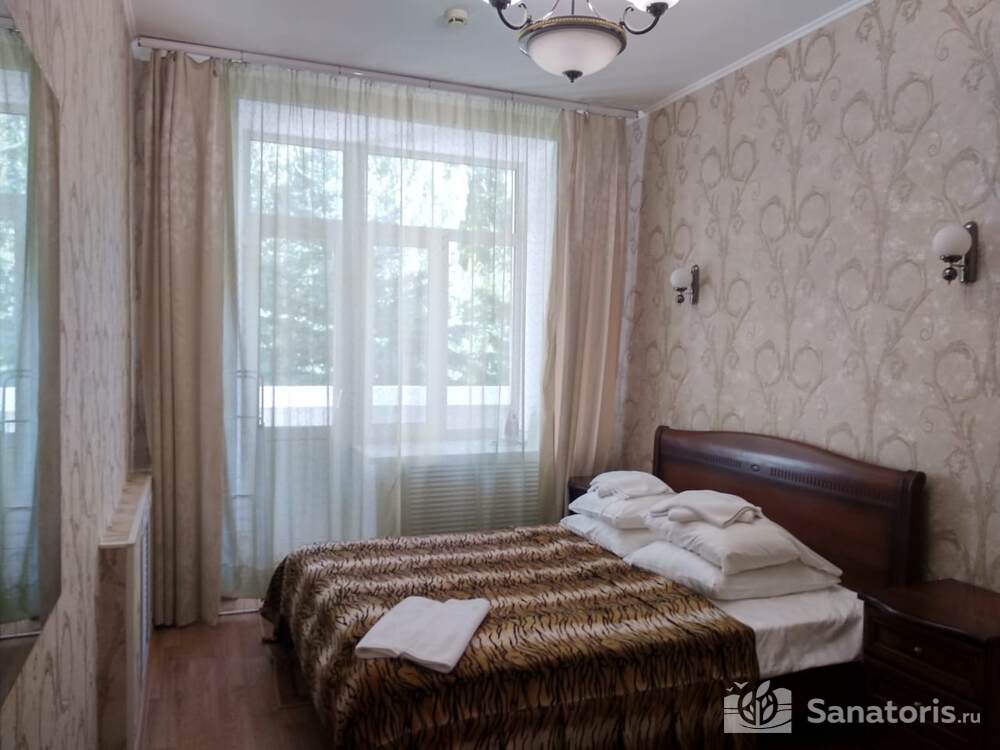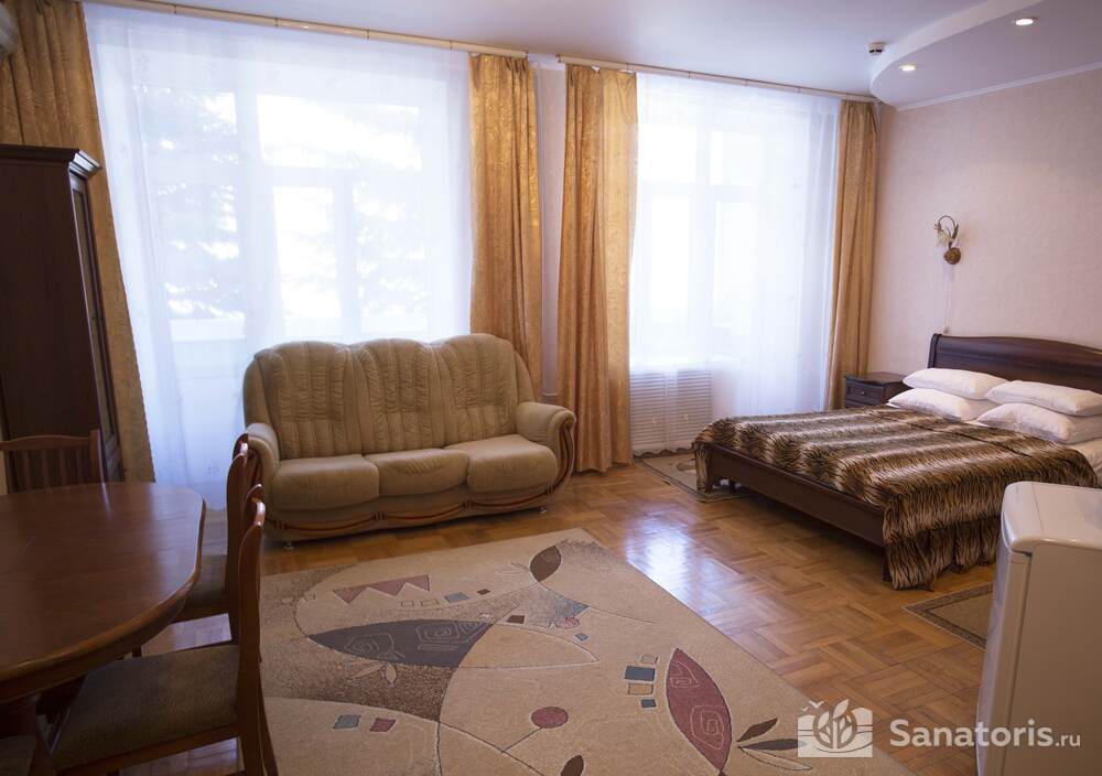 Сам санаторий представлен тремя жилыми корпусами в несколько этажей. Все здания, а также обеденный зал, лечебный центр и питьевая галерея соединены между собой специально сделанными проходами. Номера встречаются как одноместные, так и рассчитанные на двух постояльцев. Причем это может быть стандартная категория, люкс, студия или семейные апартаменты. Каждый номер при этом оснащен отдельной туалетной комнатой, ванной или душевой кабиной, бытовой техникой.