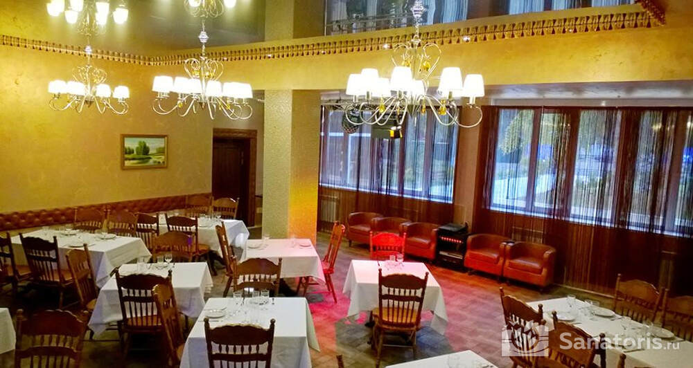 Питание гостей осуществляется в ресторане. Здесь туристам предлагают комплексное меню. Все блюда готовят из экологически чистых натуральных продуктов. Шикарный банкетный зал идеально подойдет для больших праздников (свадьба, юбилей, детское торжество).