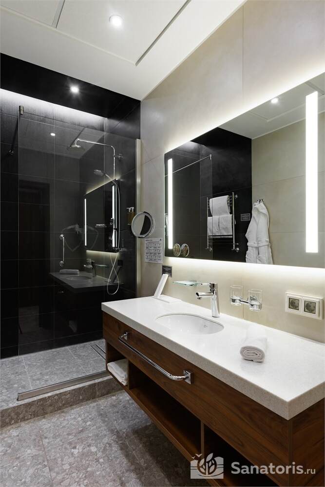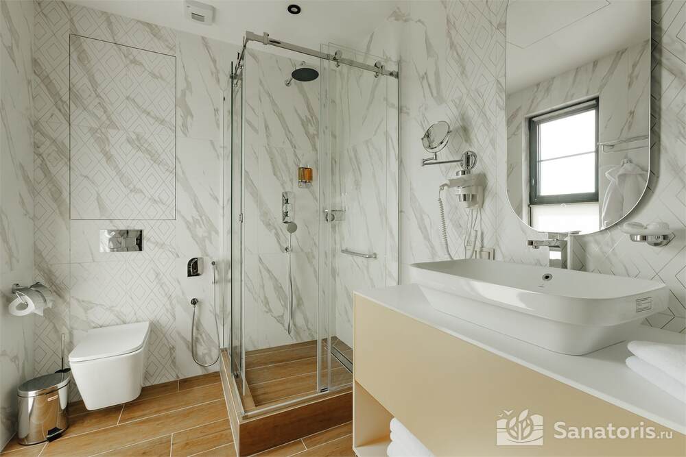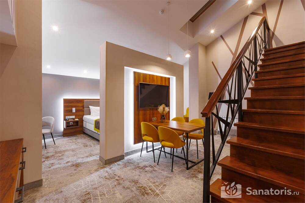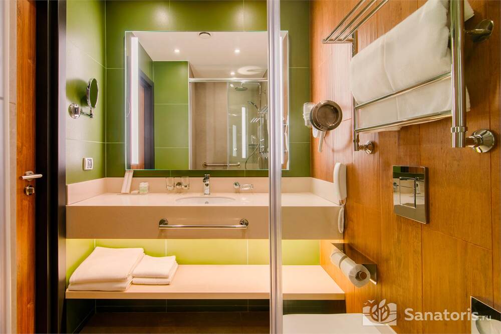 Здесь есть русская баня на дровах, спа-салон, парикмахерская.