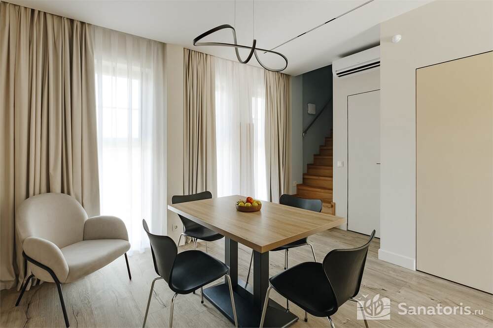 Гости проживают в комфортных апартаментах со всем необходимым. Так же есть отдельно стоящие домики из натурального дерева. В них установлена новая сантехника, современная мебель.