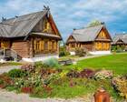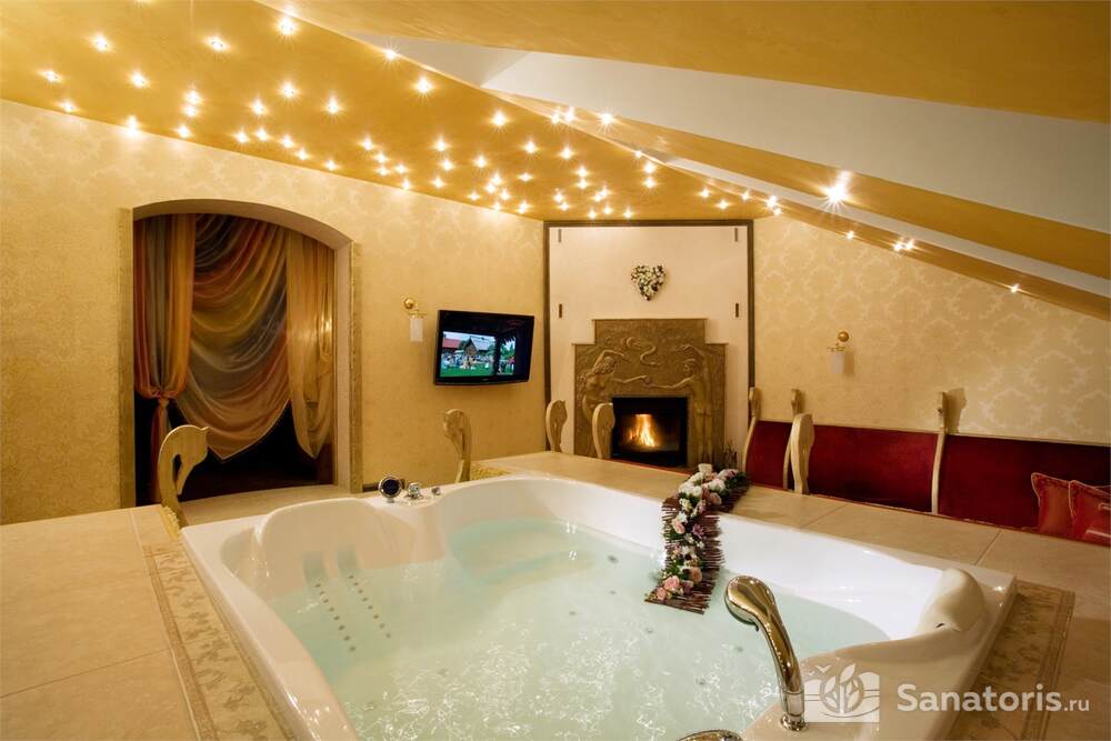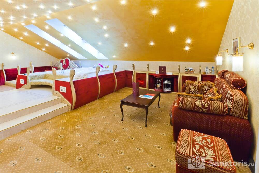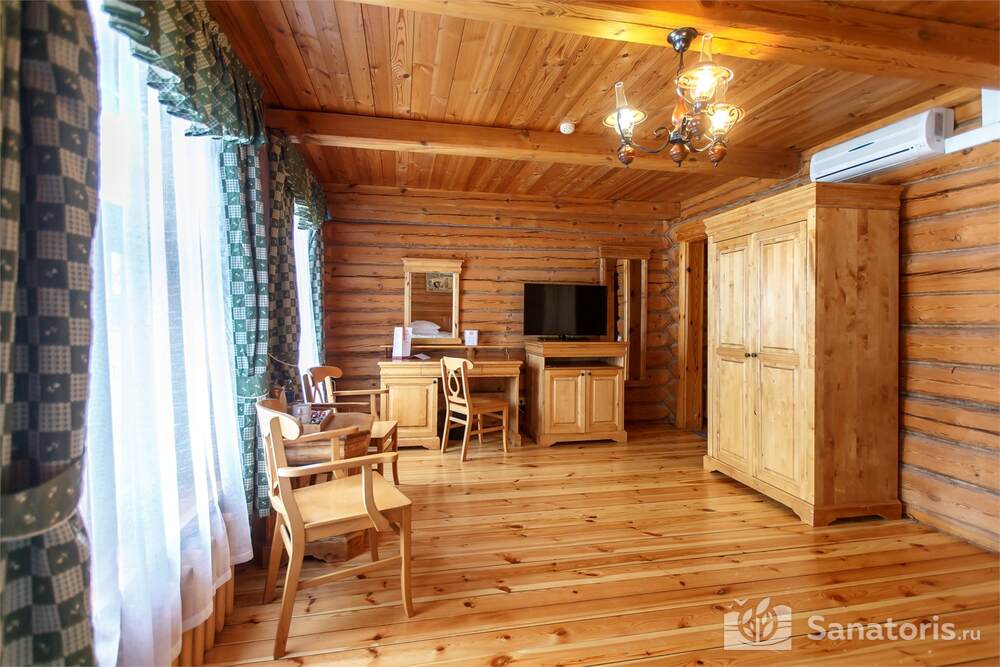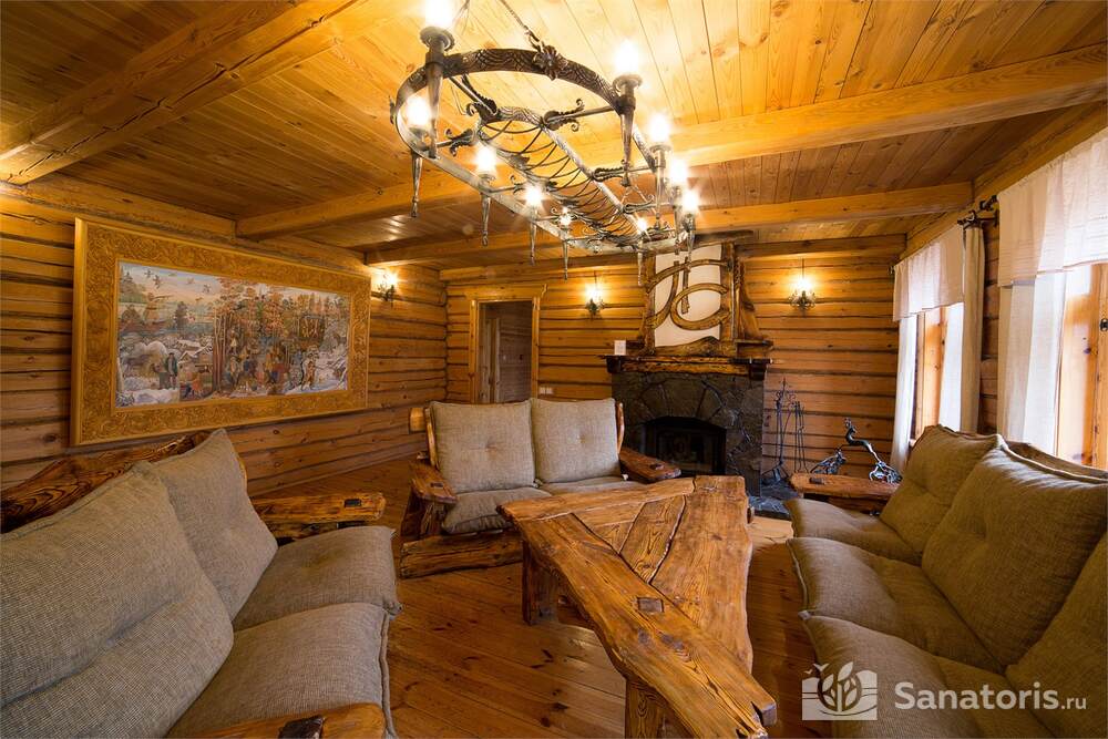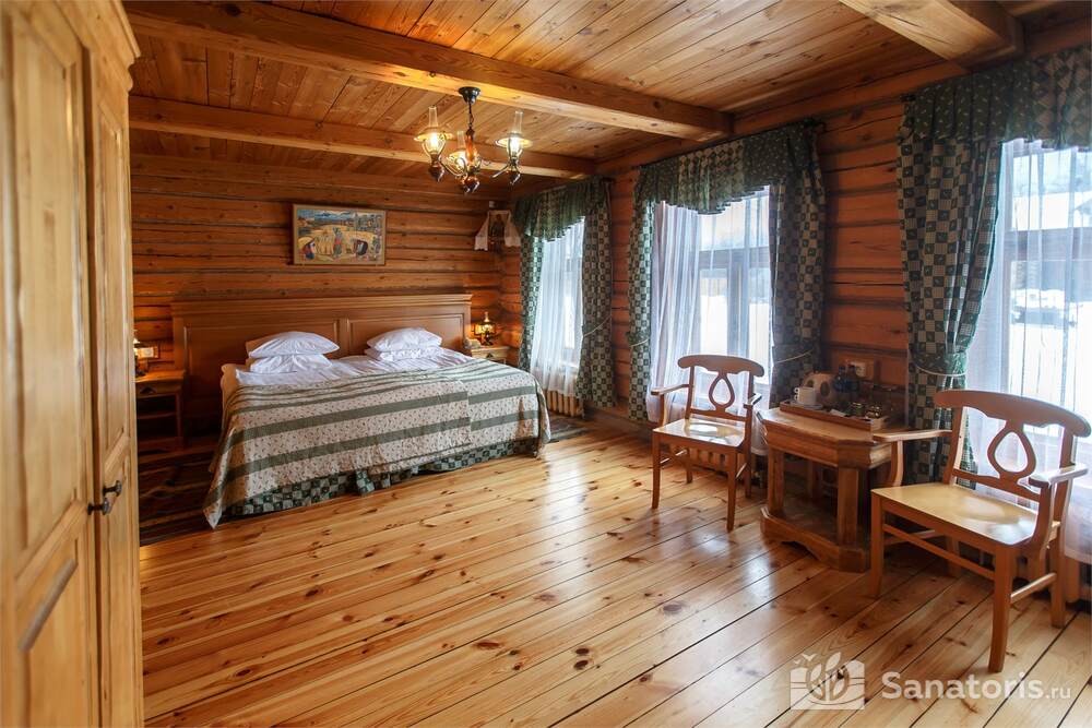 Так же можно арендовать отдельно стоящий домик из натурального дерева. Для vip-гостей предусмотрен царский дом. Здесь представлены номера класса премиум. Есть отдельный выход, персональная автостоянка, гостиная с камином, личный бассейн и финская сауна.