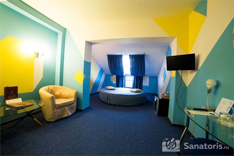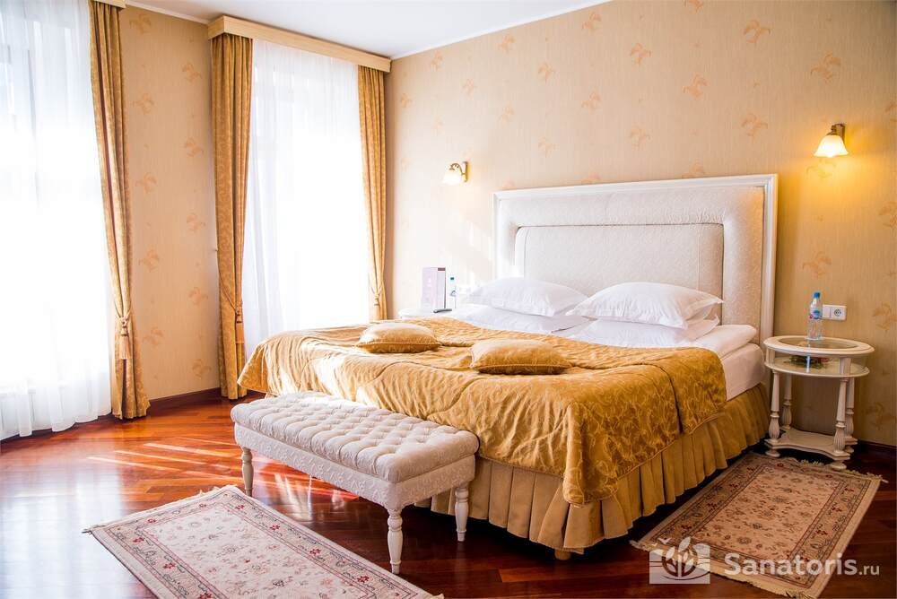 На территории оздоровительного комплекса расположено два двухэтажных спальных корпуса. Дизайн номеров полностью передает дух прошлого времени. Однако, несмотря на это гости отеля обеспечиваются максимальным комфортом.