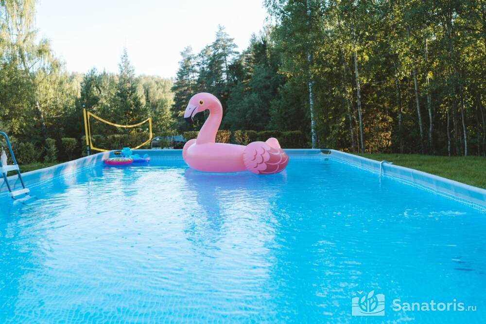 База отдыха имеет собственный пляж, большой бассейн с лежаками и зонтами. Так же есть площадка для занятий спортом, батут и игровая комната для детей.