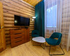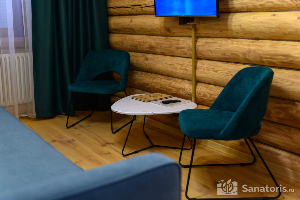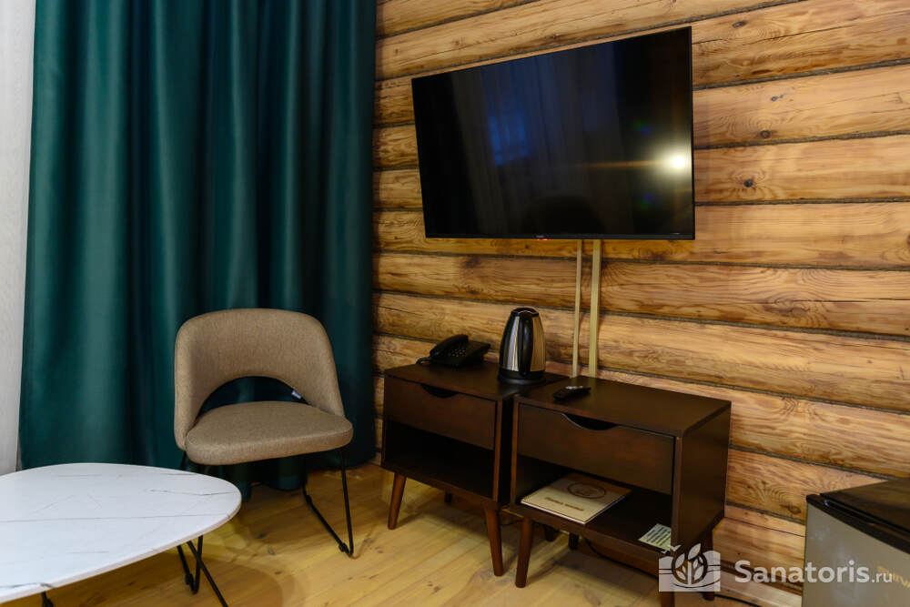 Одновременно в гостиницу можно заселить около 500 туристов. Для оформления номеров использовали исключительно природные материалы. В каждом номере есть современная мебель, плазменный телевизор, туалет, ванная комната, холодильник. Некоторые апартаменты оснащены джакузи.