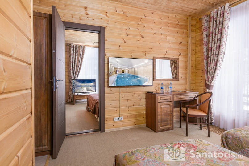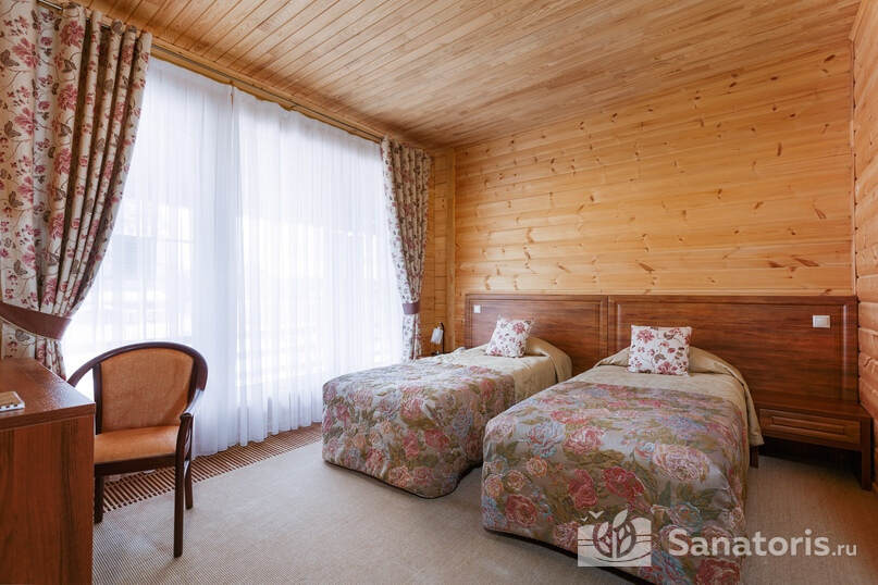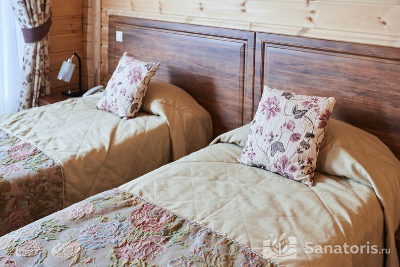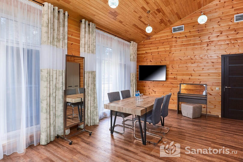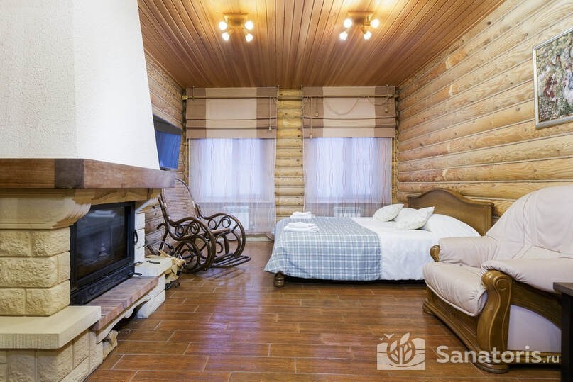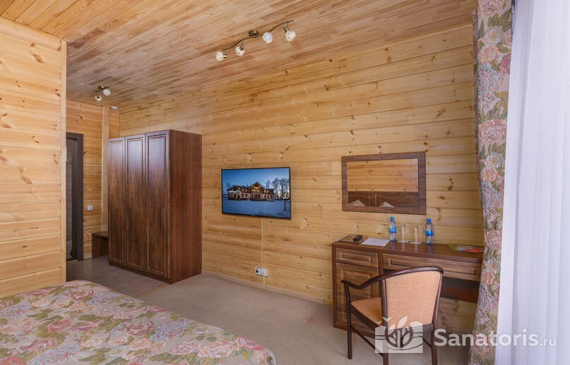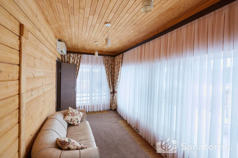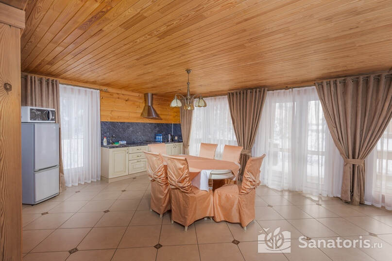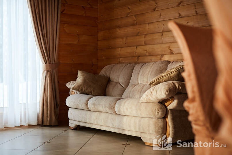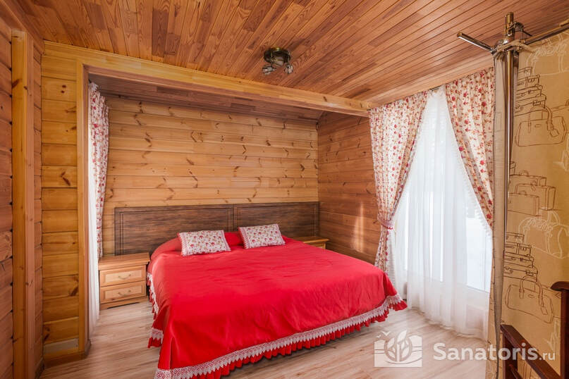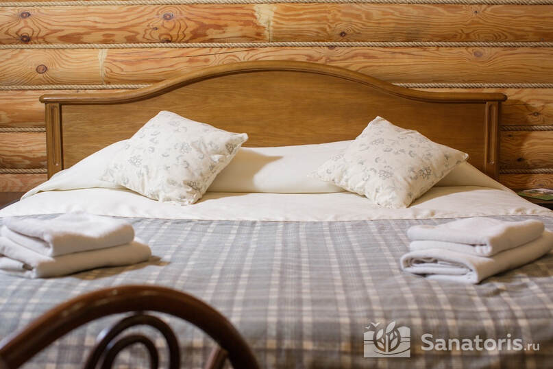 Гости проживают в двухэтажном жилом корпусе, который построен из натурального бруса. Так же есть комфортабельный коттедж.