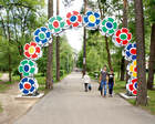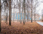 На ухоженной территории комплекса растет много зелени. В тени деревьев установлены скамейки.