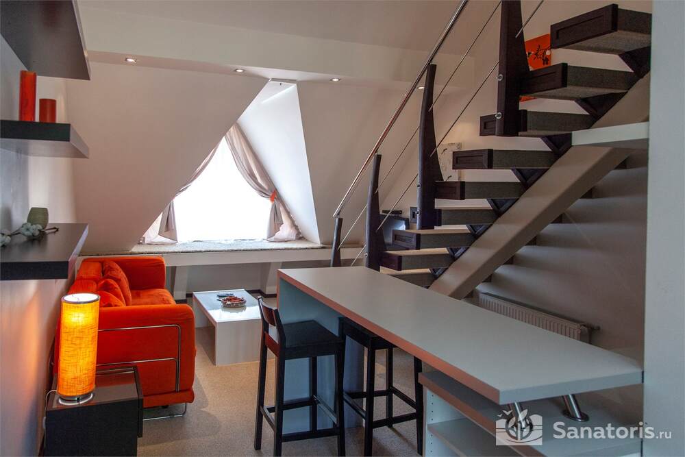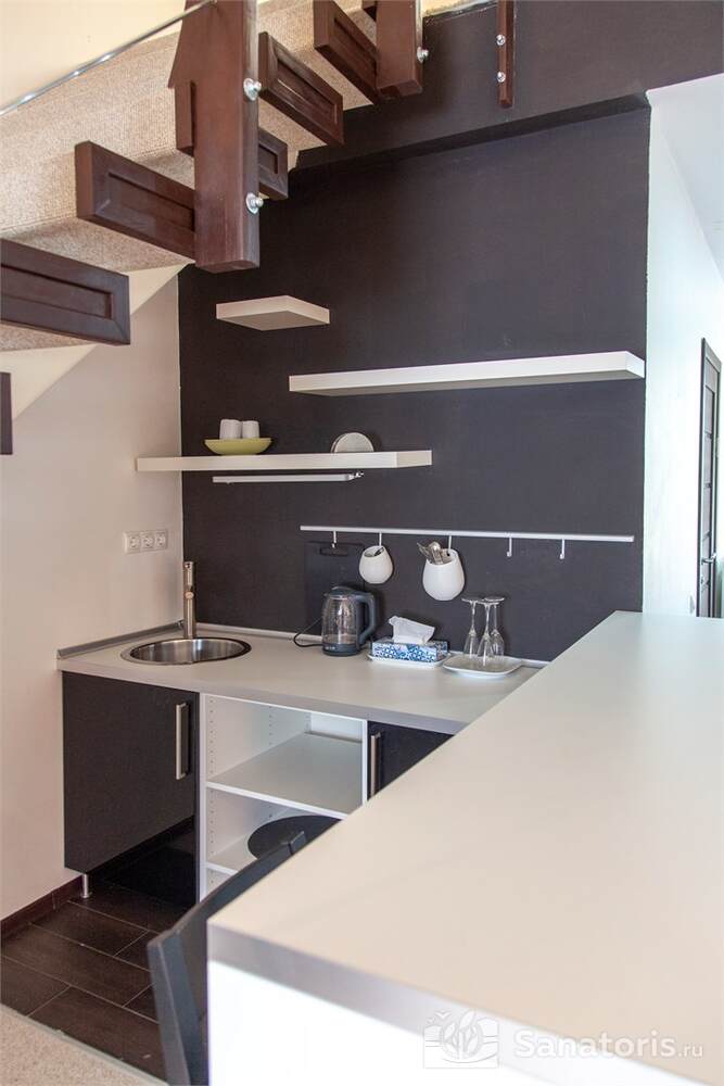 В отеле предусмотрено 9 номеров класса люкс, 5 двухэтажных апартаментов с просторной террасой, 4 номера класса стандарт с отдельными входами. В каждом номере есть небольшая кухня, где постояльцы могут приготовить пищу или разогреть готовые продукты. На свежем воздухе имеется зона барбекю.