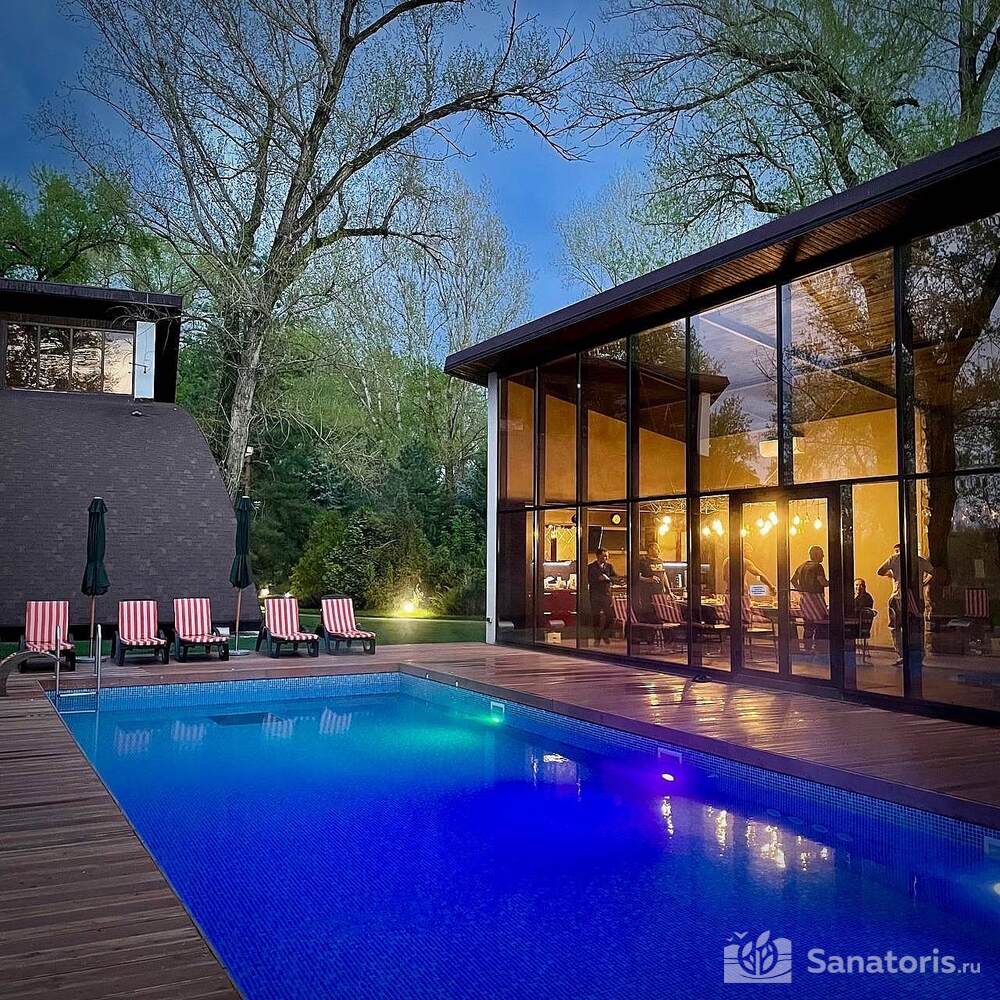 Для гостей оздоровительного комплекса работает спа-центр, шикарный ресторан, бассейн с подогревом.