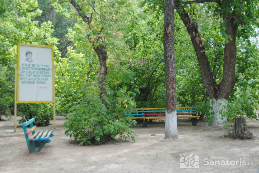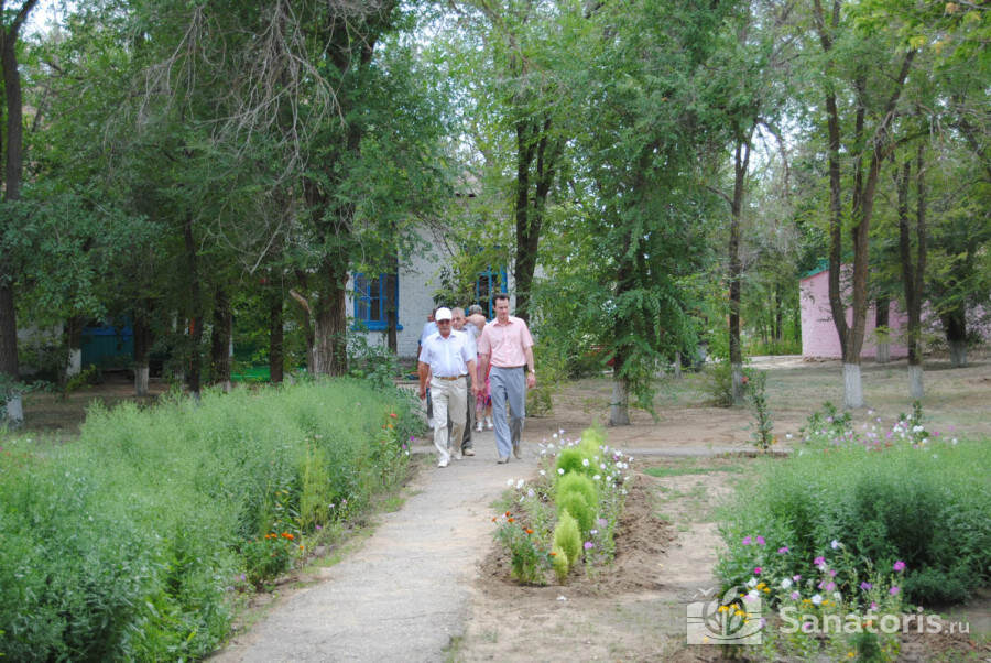Общая площадь профилактория составляет более 20 гектаров парковой зоны. По всей территории растут декоративные кустарники, множество видов деревьев и цветов. В парке оборудованы уютные беседки, лавочки и столы. Гостям санатория будет приятно посидеть в тени деревьев и подышать степным воздухом.