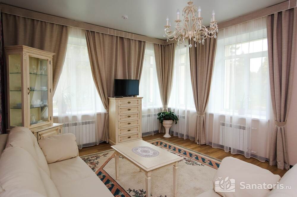В инфраструктуру санатория входят три жилых здания с номерами разного уровня комфорта, всего на 300 мест. Еще - лечебно-диагностический корпус, столовая-клуб, административное здание и торговый центр. Корпуса соединены между собой теплыми переходами. В столовой предусмотрено четырехразовое питание по заказному меню, отдельно готовятся диетические блюда. Возможно пребывание с родителями детей в возрасте от 4 лет, для них оборудована игровая комната. Для интересного времяпровождения гостей созданы все условия: есть библиотека, кинозал, бильярд и теннис, организован прокат спортивного инвентаря, проводятся вечера отдыха. Сотрудники санатория регулярно устраивают экскурсии в Ярославль, богатый историческими и культурными достопримечательностями.