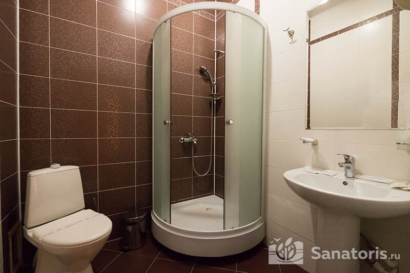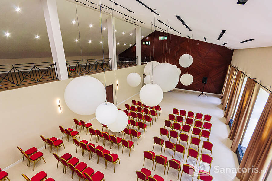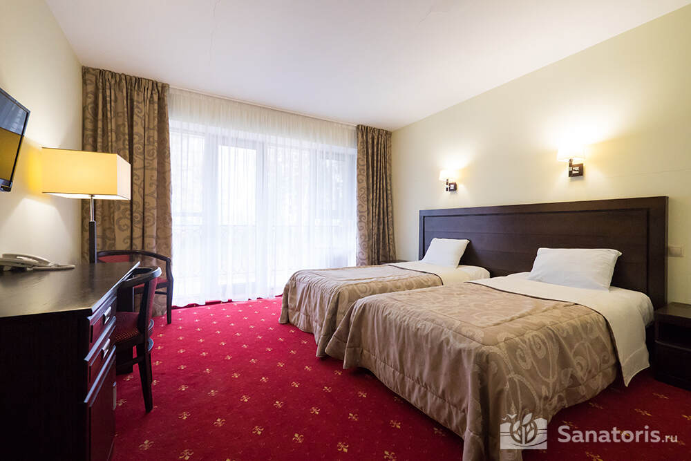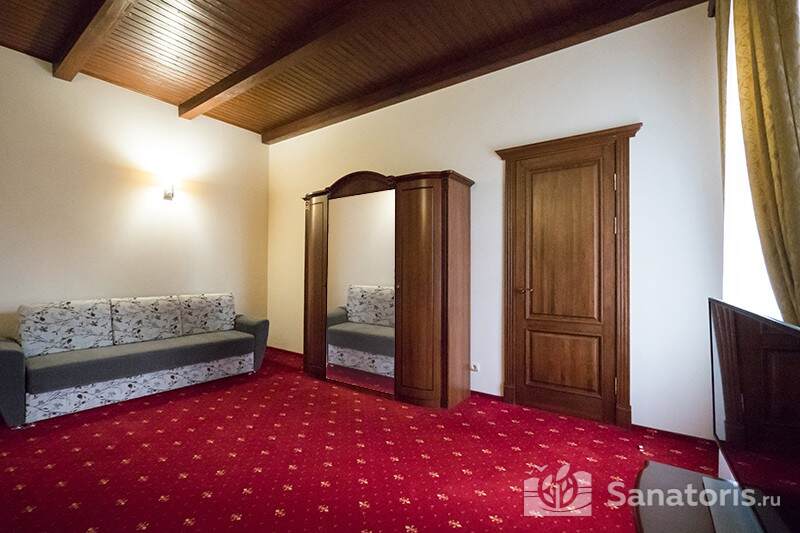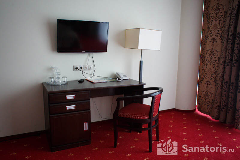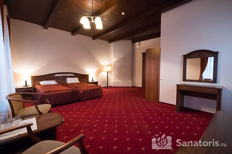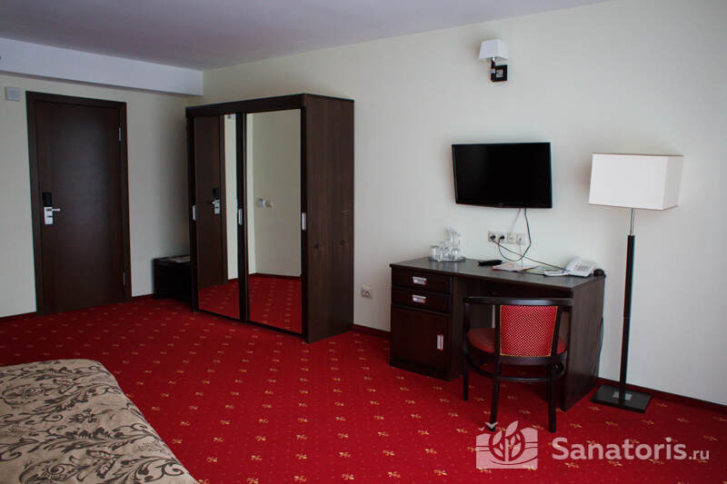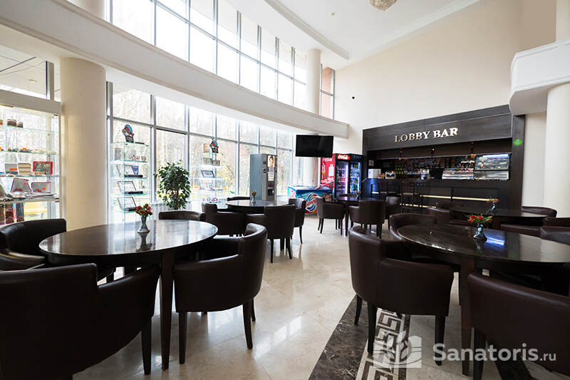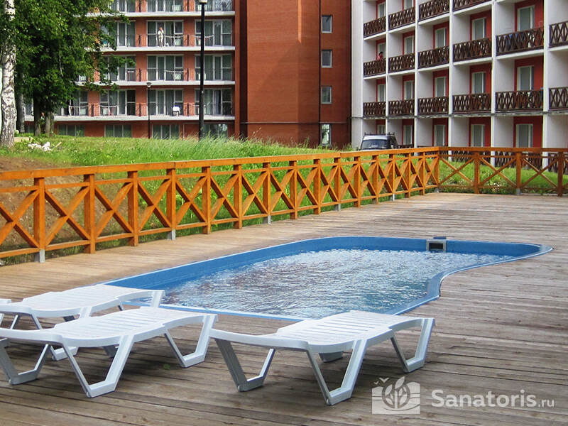 Между главным и медицинским корпусами есть теплый переход. В нем оборудован шикарный бассейн. В каждом корпусе присутствует бесшумный лифт. Гости могут вкусно поесть в ресторане.