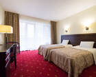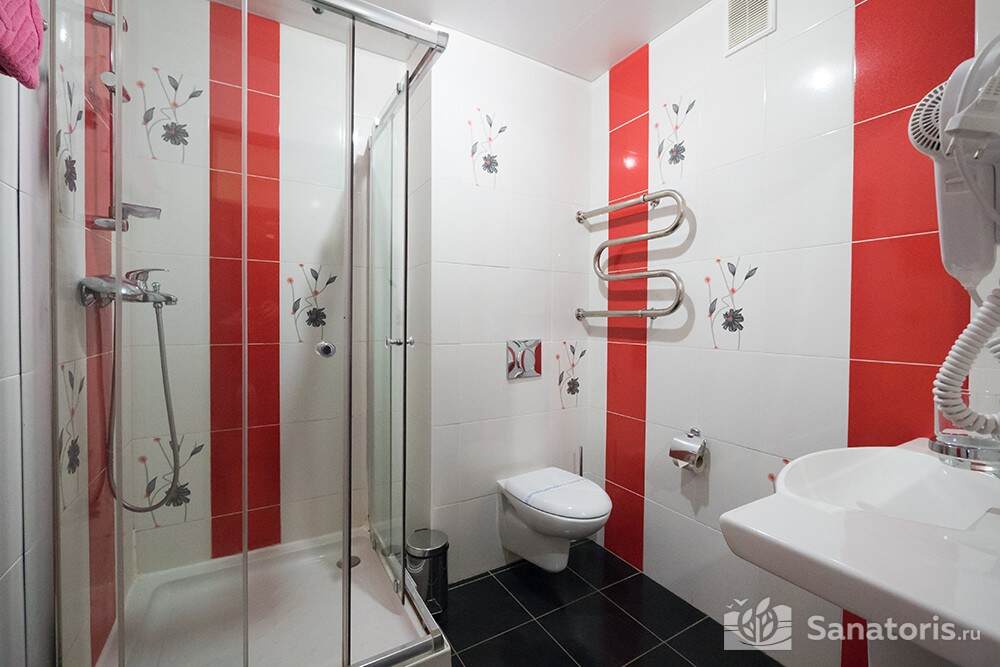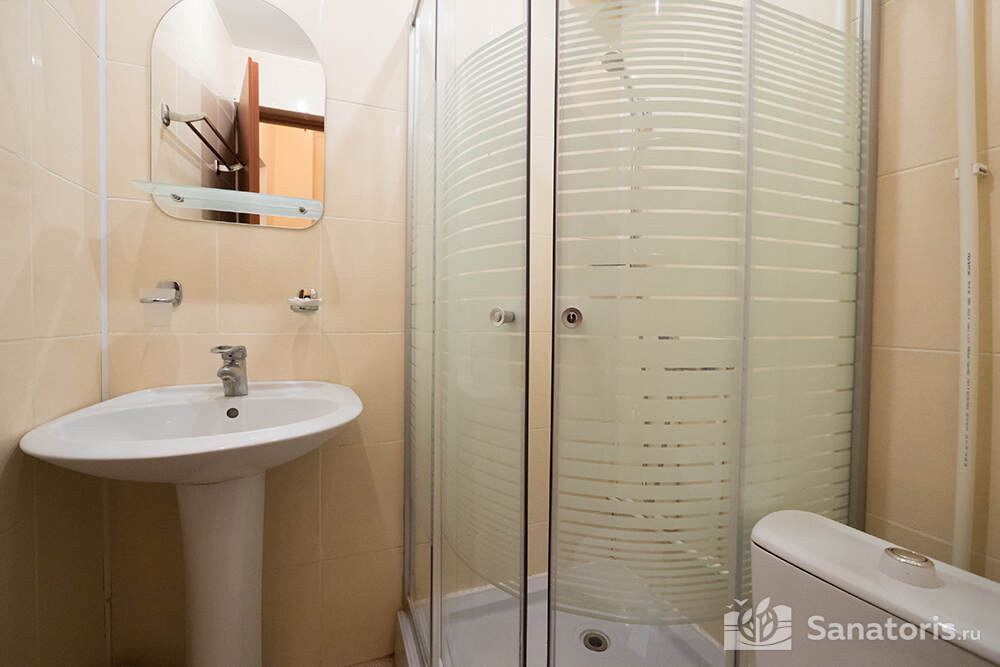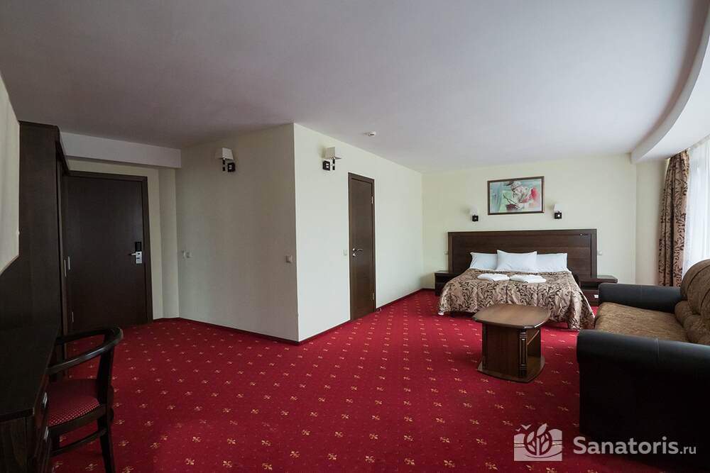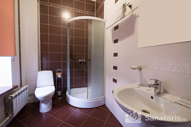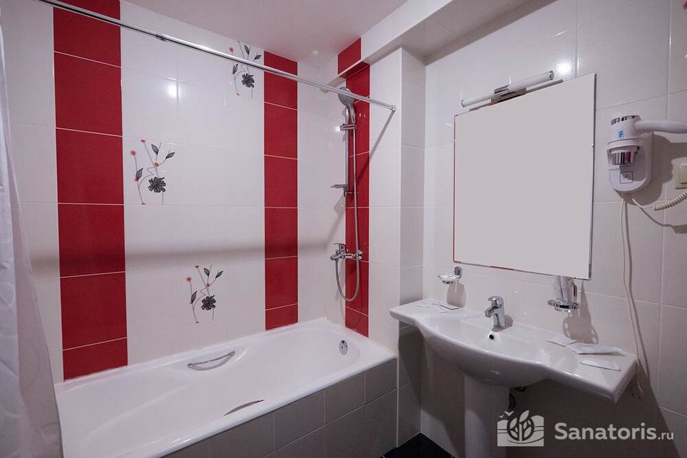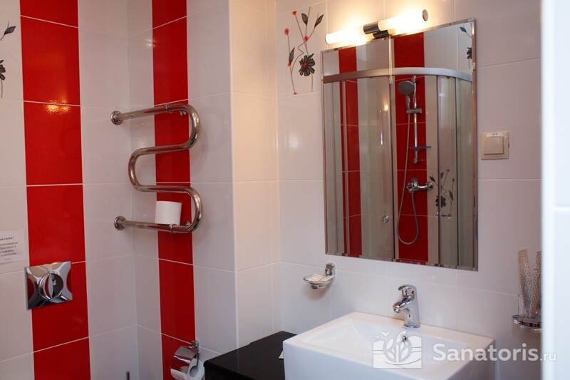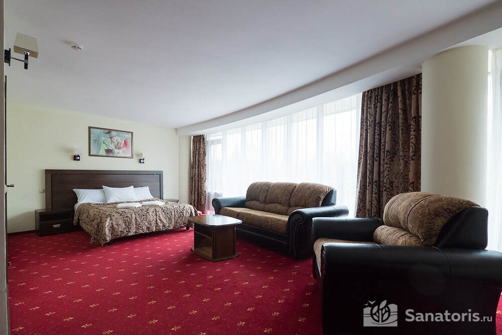 Между главным и медицинским корпусами есть теплый переход. В нем оборудован шикарный бассейн. В каждом корпусе присутствует бесшумный лифт. Гости могут вкусно поесть в ресторане.