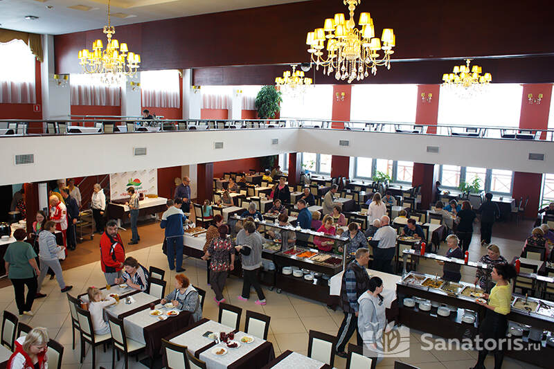 Гости питаются в просторной столовой три раза в день. Организовывается система шведского стола. Для гостей, которые страдают сахарным диабетом, предусмотрено специальное меню. Постояльцы комплекса могут дополнительно перекусить в лобби-баре. Здесь представлены разные напитки и закуски.
