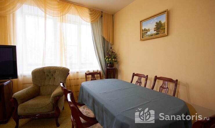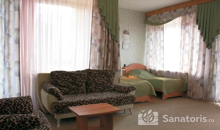 Одновременно в санатории могут проживать 205 постояльцев. Есть номера класса «стандарт», а так же улучшенные апартаменты категории «комфорт» со всеми удобствами. В некоторых апартаментах есть просторные балконы, где постояльцы могут любоваться прекрасными видами на реку.
