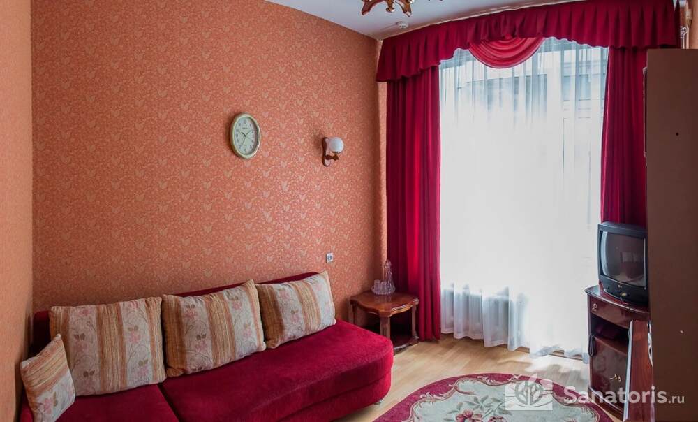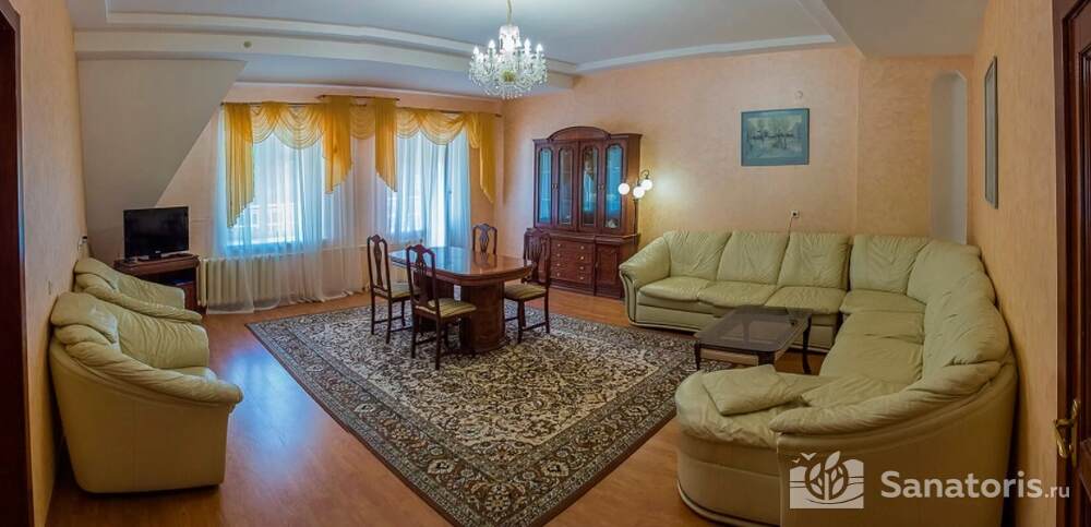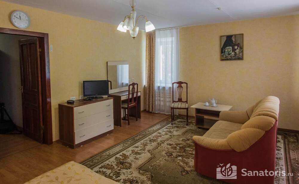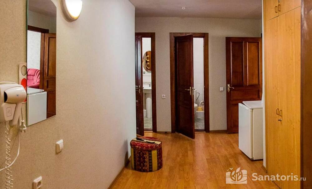 Санаторий возведён на закрытом участке. Он — охраняется. Здравница имеет площадь в 3 гектара. На нём находятся 2 корпуса, предназначенные для отдыхающих. В них нет лифта. Один из них состоит из 3 этажей, а другой — из 5. Они объединены переходом. Посетители могут заказывать 102 номера.