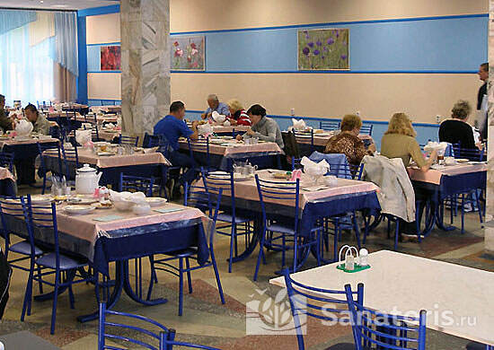 Питание гостей осуществляется в обеденном зале. Все блюда готовятся исключительно из натуральных продуктов, которые доставляют из местных фермерских хозяйств. По предписанию врача предоставляется диетическое меню. Так же разработано специальное меню для детей.